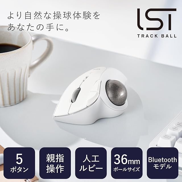 商品名:エレコム ワイヤレス トラックボールマウス IST Bluetooth 親指操作 36mmボール 人工ルビー支持 5ボタン Windows Mac Chromebook ホワイト M-IT10BRWH