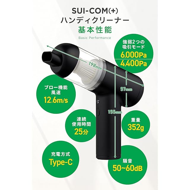 ✅【子育て世代の頼れる味方!】 今回リリースする"SUI-COM(+)"は、デザイン性に優れたシンプルでマットなデザインであり、コンパクトサイズながら十分な2段階の吸引力で調整が可能です。また、吸引だけではなく専用ノズルを取り付ける事で、ブローも可能となりますので、普段の掃除に加え、キーボードや机の隅々など、細かな場所の掃除にも最適です。