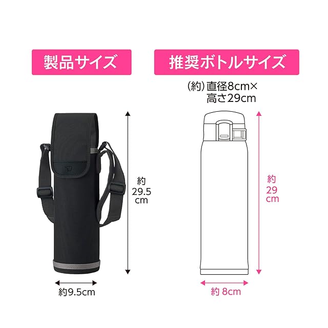 商品名:象印マホービン 水筒カバー 950ml用 肩掛け ハンドルつき 洗濯機洗いOK 名前が書けるネームタグつき ステンレスボトルカバー ブラック MC-EA05-BA