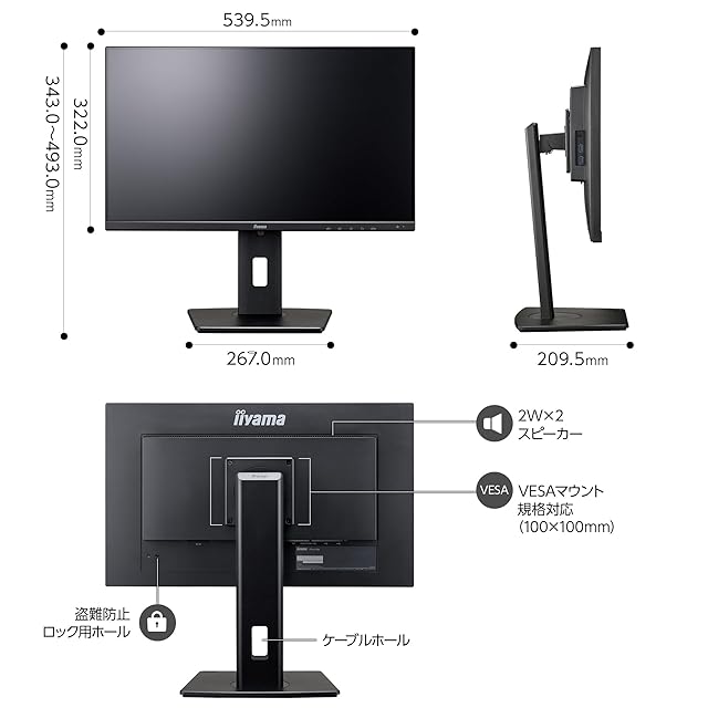[サイズ]539.5(幅)×343.0~493.0(高)×209.5(奥行)mm/重量:5.8kg(スタンド含む) []3年間(※ユーザー登録で2年延長可能) /24時間365日国内サポート