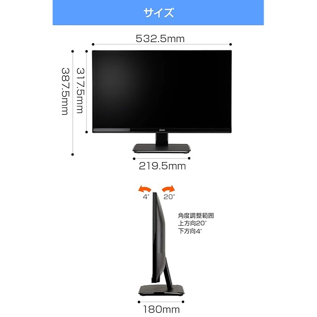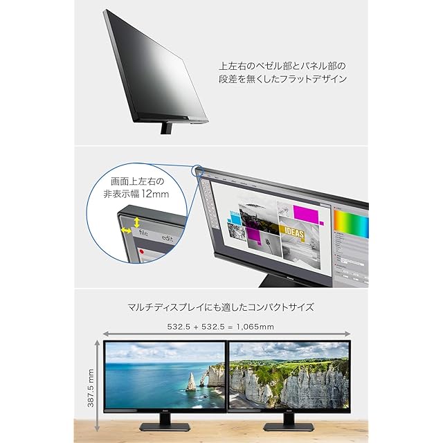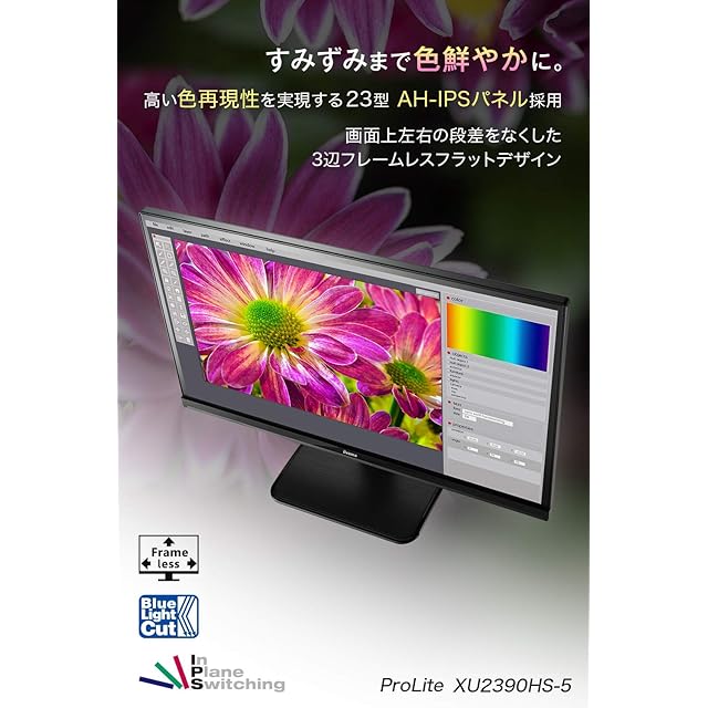 23型フルHD(1920x1080)AH-IPSパネル方式広視野角ノングレア液晶ディスプレイ