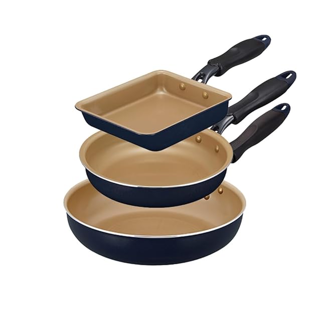商品名:エバークック フライパンセット 3点セット オール熱源対応(IH対応) 【500日】こげつきにくいフライパン PFOA PFOS フリー ネイビー ドウシシャ