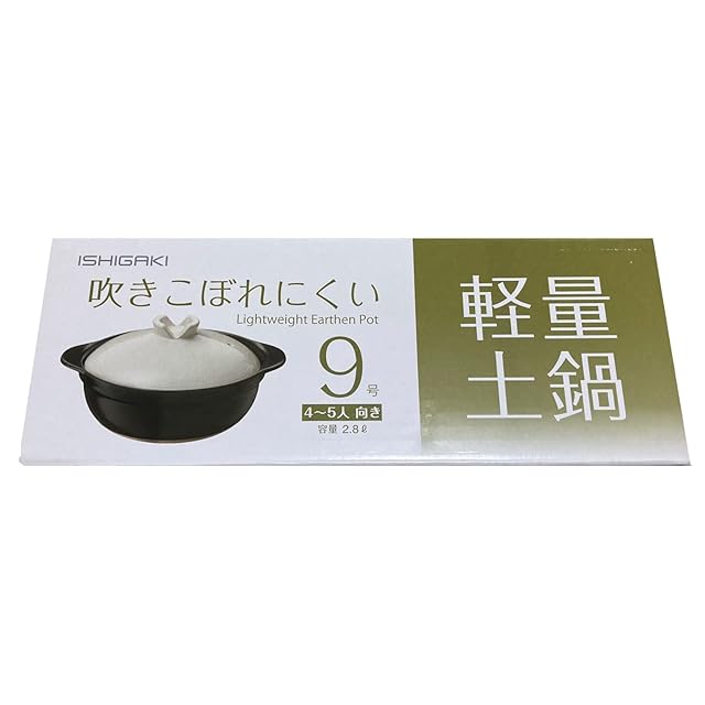 イシガキ産業 イシガキ 軽量 土鍋 9号 約幅32.5×奥行27.5×高16cm 2.8L 4~5人用 吹きこぼれにくい ガス火用 遠赤外線効果 4364 ブラック