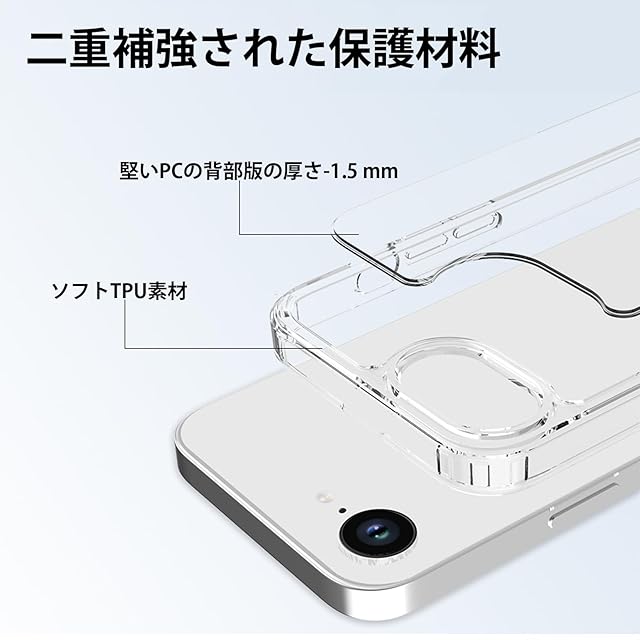 【適用型番】このスマホケースはiPhone 16e専用にデザインされており、精密な技術とカッティング処理が施されています。ケースを装着したままでも電源ボタン、音量ボタン、接続ポートなどを自由に操作でき、取り付けや取り外しも簡単です。精巧で軽量なデザインで、控えめでエレガントな印象を与え、長時間持っていても疲れません【透明な美学、優雅さおよび贅沢】ケースは透明で滑らかなデザインで、iPhone本来の美観をはっきりと味わうことができます。光透過性と耐摩耗性に優れ、誤ってケースに切り込みを入れてしまっても、傷が残りにくく、滑らかで手触りが良く、手離れが悪くなく、分解が簡単で、防汚、指紋が付きにくいです。 [すべての素材が環境にやさしい]【米軍MIL規格・高耐衝撃性】このスマホケースは、世界的に有名な米国軍事規格を取得しており、高弾性の衝撃吸収バンパーと頑丈なポリカーボネート素材を組み合わせた設計で、優れたバランスを実現しています。優れた耐衝撃性能を備え、あらゆる方向からあなたのスマホをしっかりと保護します【レンズ・画面まで細部保護】本ケースは段差設計を採用し、画面縁とカメラ周りをわずかに高く仕上げることで、外部接触によるキズを効果的に防止。背面には滑り止め加工を施し、長時間の使用でも疲れにくい快適なグリップ感を実現。ビジネスからアウトドアまで、様々なシーンで快適にご使用いただけます【カスタマーサービス】私たちは、お客様が私たちの存在理由であると確信しており、常にユーザー体験を最優先に考え、製品の品質向上に努めております。これが私たちのブランド理念です。したがって、このiPhoneケースを安心してご購入いただけます。万が一、製品に品質の問題が発生した場合は、商品到着後30日以内にご連絡いただければ、24時間対応のオンラインサービスを提供いたします。お客様の状況に応じて、交換または返金をさせていただきます