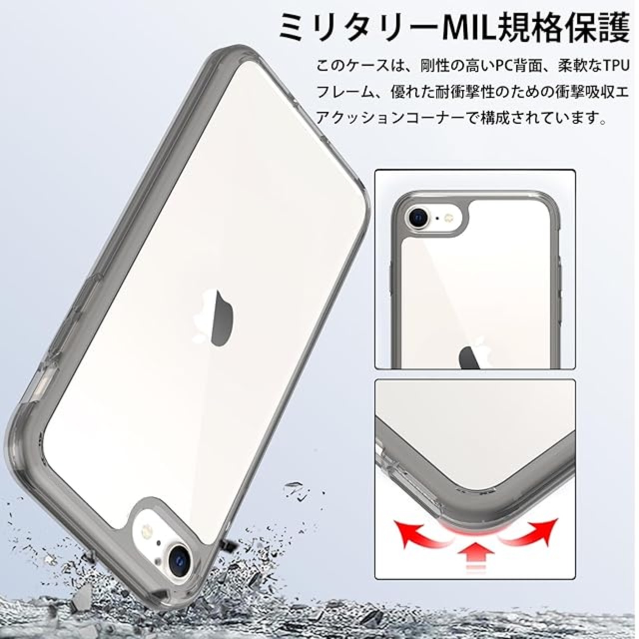 【適用型番】このスマホケースはiPhone SE(2022)/SE(2020)/8/7専用にデザインされており、精密な技術とカッティング処理が施されています。ケースを装着したままでも電源ボタン、音量ボタン、接続ポートなどを自由に操作でき、取り付けや取り外しも簡単です。精巧で軽量なデザインで、控えめでエレガントな印象を与え、長時間持っていても疲れません【米軍MIL規格・高耐衝撃性】このスマホケースは、世界的に有名な米国軍事規格を取得しており、高弾性の衝撃吸収バンパーと頑丈なポリカーボネート素材を組み合わせた設計で、優れたバランスを実現しています。優れた耐衝撃性能を備え、あらゆる方向からあなたのスマホをしっかりと保護します【透明な美学、優雅さおよび贅沢】ケースは透明で滑らかなデザインで、iPhone本来の美観をはっきりと味わうことができます。光透過性と耐摩耗性に優れ、誤ってケースに切り込みを入れてしまっても、傷が残りにくく、滑らかで手触りが良く、手離れが悪くなく、分解が簡単で、防汚、指紋が付きにくいです[すべての素材が環境にやさしい]【レンズ・画面まで細部保護】本ケースは段差設計を採用し、画面縁とカメラ周りをわずかに高く仕上げることで、外部接触によるキズを効果的に防止。背面には滑り止め加工を施し、長時間の使用でも疲れにくい快適なグリップ感を実現。ビジネスからアウトドアまで、様々なシーンで快適にご使用いただけます【カスタマーサービス】私たちは、お客様が私たちの存在理由であると確信しており、常にユーザー体験を最優先に考え、製品の品質向上に努めております。これが私たちのブランド理念です。したがって、このiPhoneケースを安心してご購入いただけます。万が一、製品に品質の問題が発生した場合は、商品到着後30日以内にご連絡いただければ、24時間対応のオンラインサービスを提供いたします。お客様の状況に応じて、交換または返金をさせていただきます