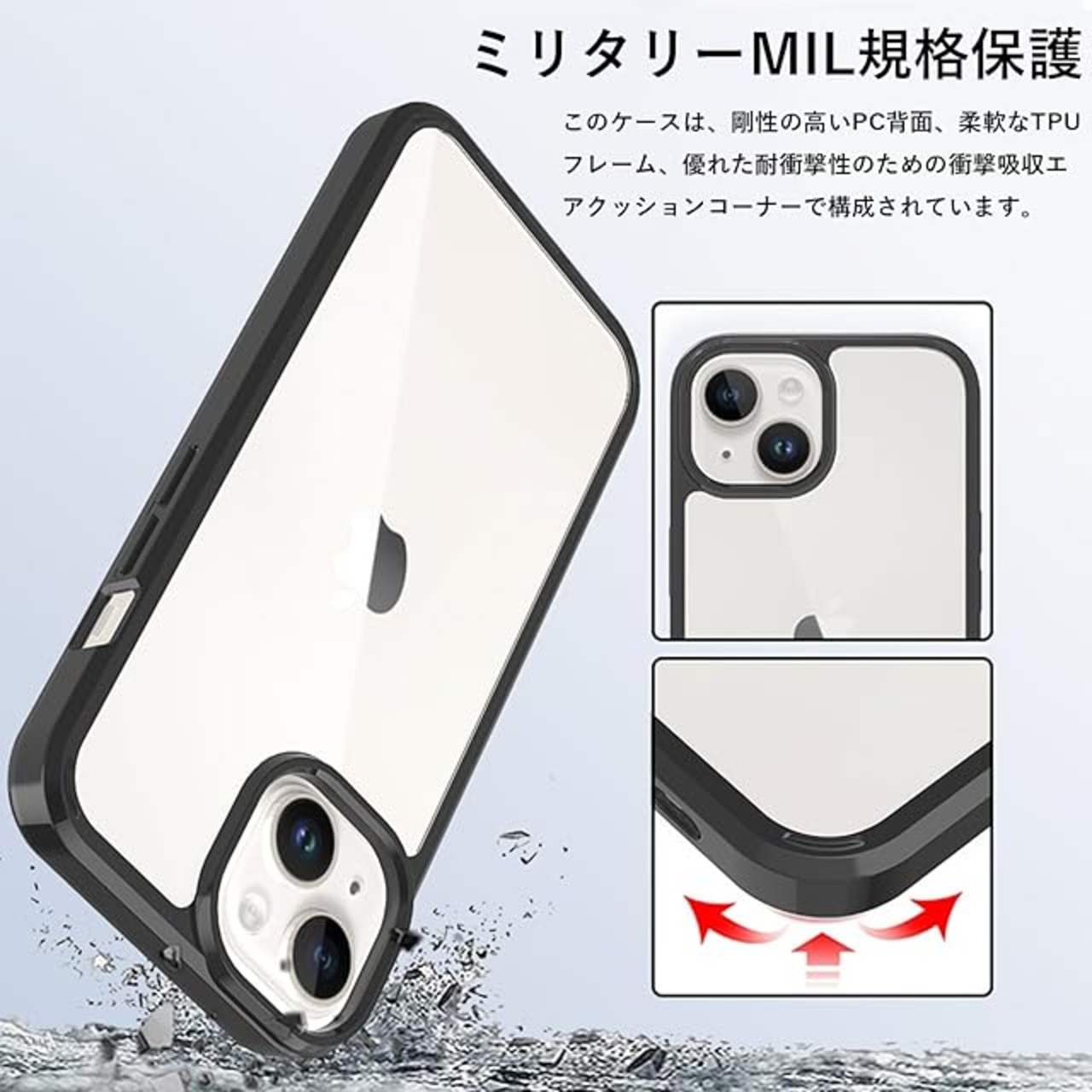 商品名:iPhone 15 ケース 耐衝撃 PC 人気 クリア すり傷防止 軽量 薄型 滑り止め 米軍MIL規格 ワイヤレス充電対応 スマホカバー EUMADOVE (ブラック傷防止, iPhone 15)
