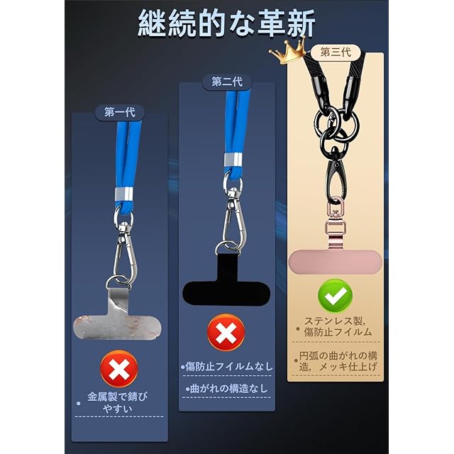 商品名:ZXZone ストラップホルダー【傷防止フィルム加工】 スマホストラップホルダー 折り曲げても浮きにくい設計・極薄0.2mmの金属製タグパッチ採用 携帯ストラップ 落下防止 首掛け 斜めがけ 肩掛け iphone android スマホアクセサリ全機種対応 (ローズゴールド-TS)