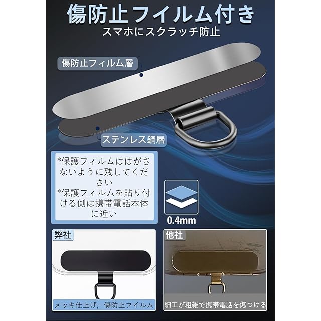 商品名:ZXZone ストラップホルダー【 傷防止フィルム加工】 スマホ ストラップホルダー 折り曲げても浮きにくい設計・極薄0.2mmの金属製タグパッチ採用 携帯ストラップホルダー 落下防止 首掛け 斜めがけ 肩掛け 首かけ 携帯ストラップ iphone android スマホアクセサリ全機種対応 (ブラック-TD)