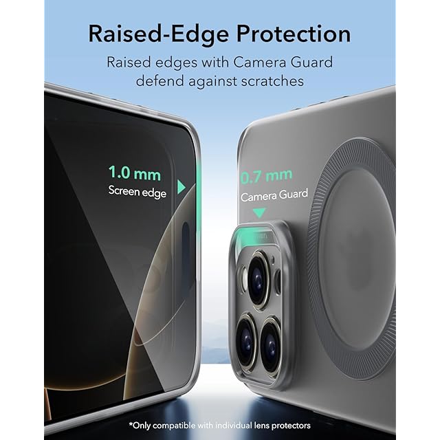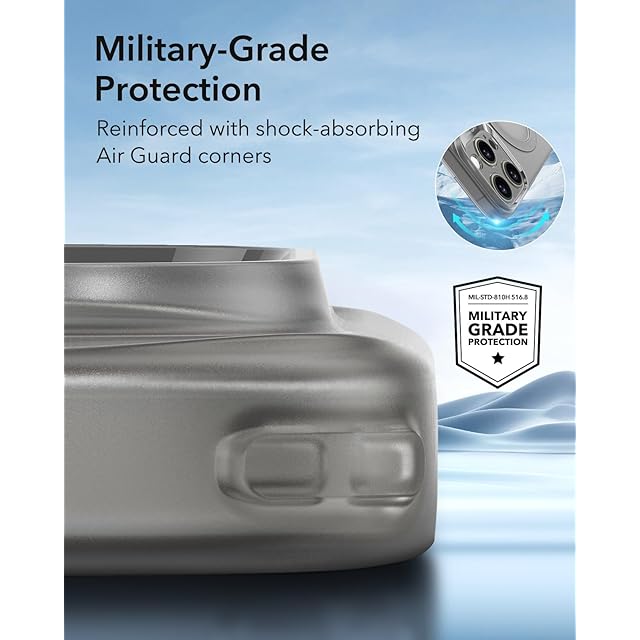 【軍事規格の保護力】衝撃を吸収するエアガードコーナーとカメラガード(0.7 mm)を備えた盛り上がったエッジ(1.2 mm)が、落下、衝撃、傷から保護します。対応機種:いphone16pro ケース