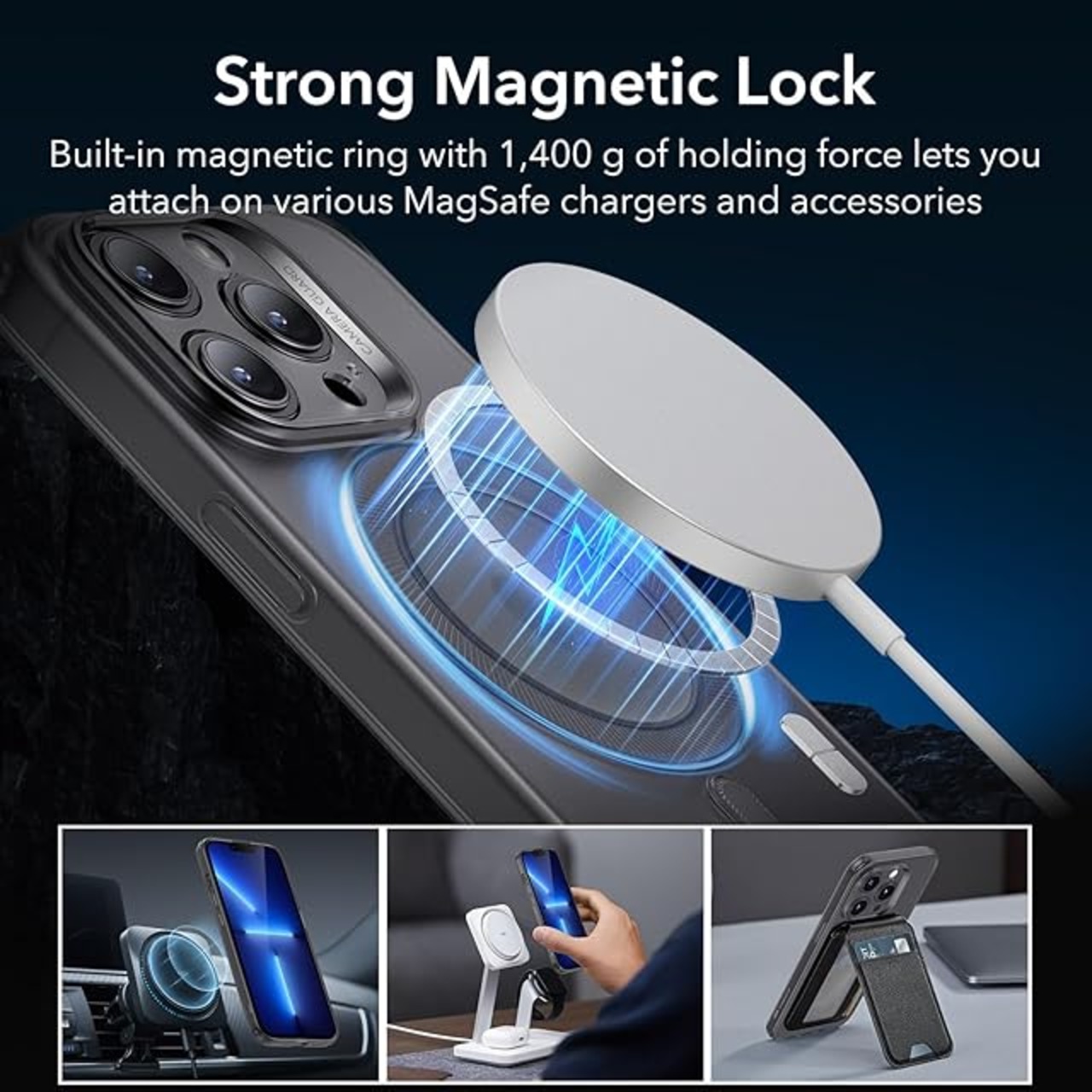 【より強力な磁気ロック】1,200gの保持力を持つ強力な内蔵マグネットが、より速く、より便利な瞬間ワイヤレス充電、およびMagSafeアクセサリーによる安全な磁気固定を可能にします