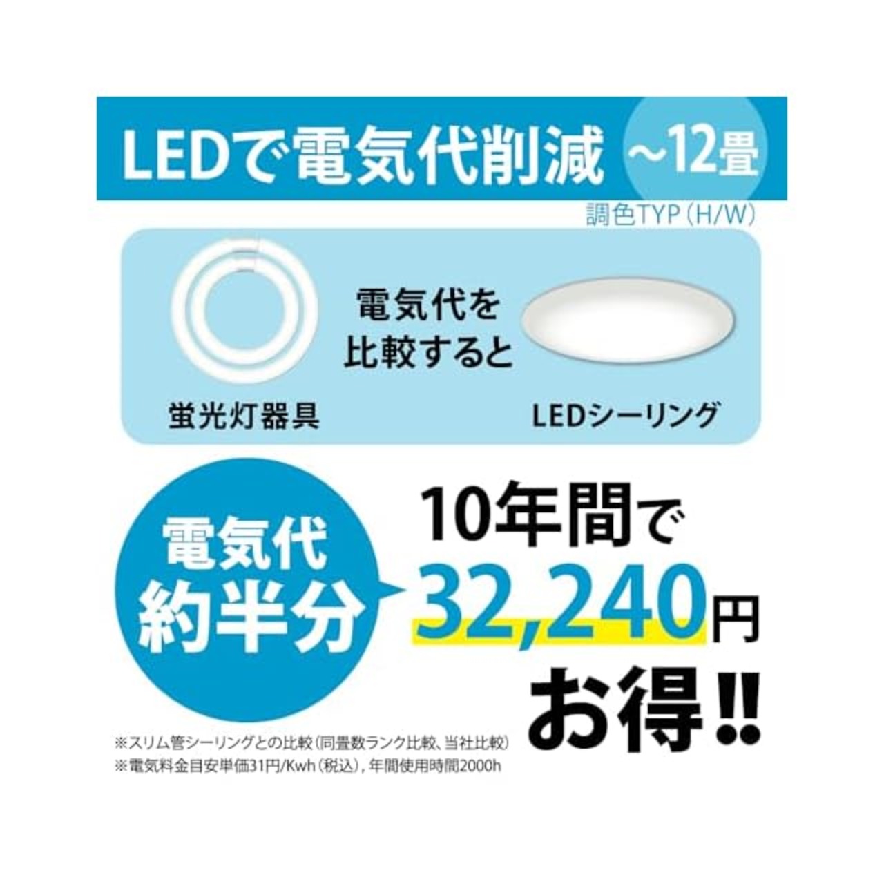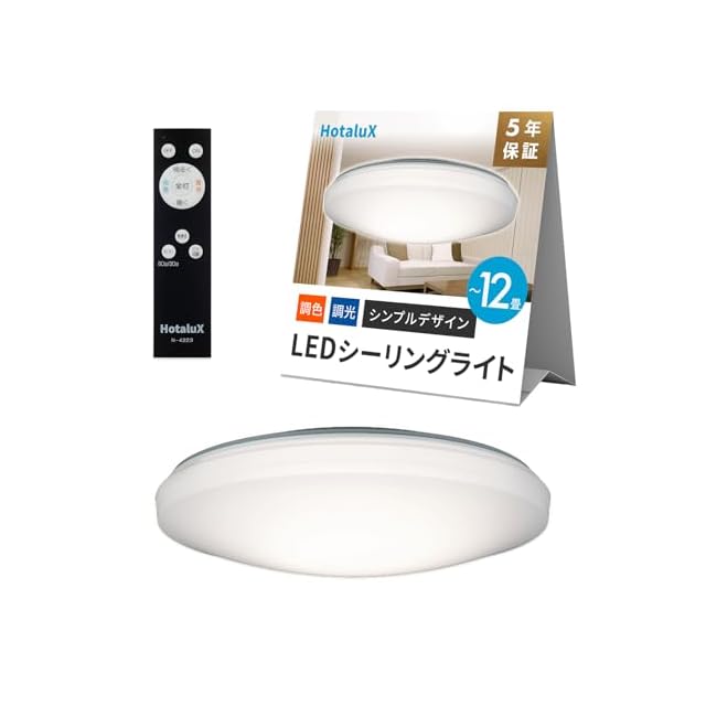 HotaluX(ホタルクス) <日本製> LEDシーリングライト HLDC12258 適用畳数~12畳 (日本照明工業会基準) 5000lm 昼光色-電球色(6500K-2700K)調色調光タイプ(主照明5段階、常夜灯3段階)リモコン シンプルデザイン