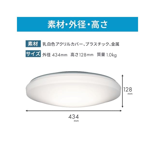 ✅商品サイズ:外径434mm 高さ128mm 重量1.0kg 適用畳数 ~12畳 定格電圧:100V 演色性:Ra83 全光束:5000lm 定格消費電力:39W 固有エネルギー消費効率:128.2㏐/w