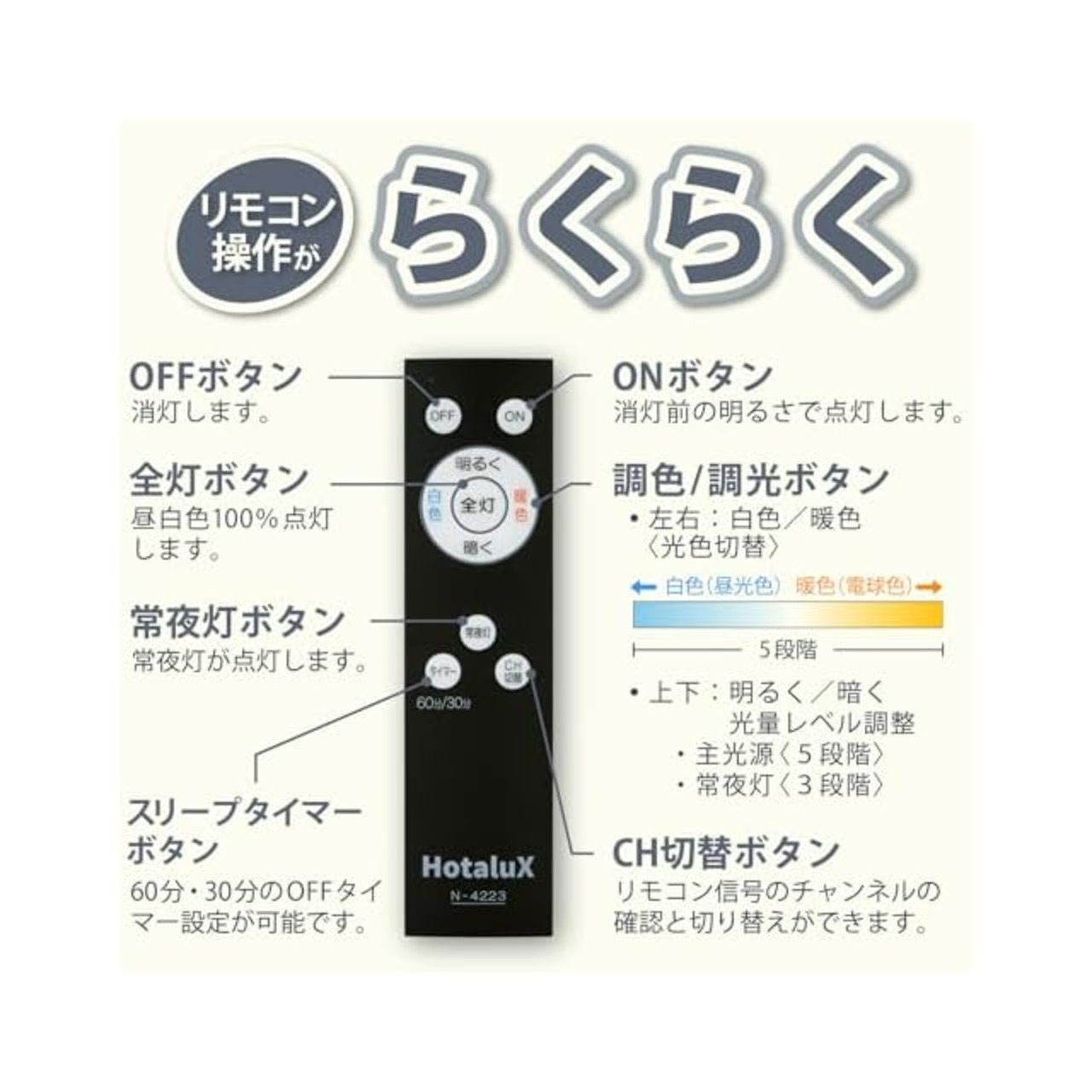 ✅主照明の光色はお好みに合わせて白色から暖色へ5つの光色から選択いただけます。明るさも5段階の明るさ設定ができ、更に常夜灯の明るさも3段階から選択が可能です。
