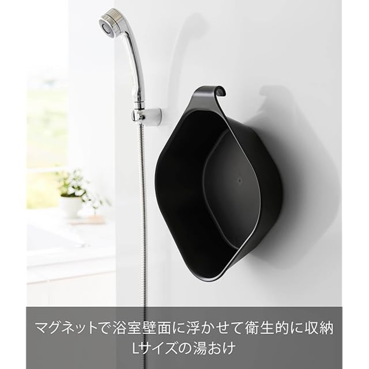 商品名:山崎実業(Yamazaki) マグネット & 引っ掛け 湯おけ L ブラック W34.5×D32×H8.8cm タワー tower 浮かせる収納 洗面器 1563