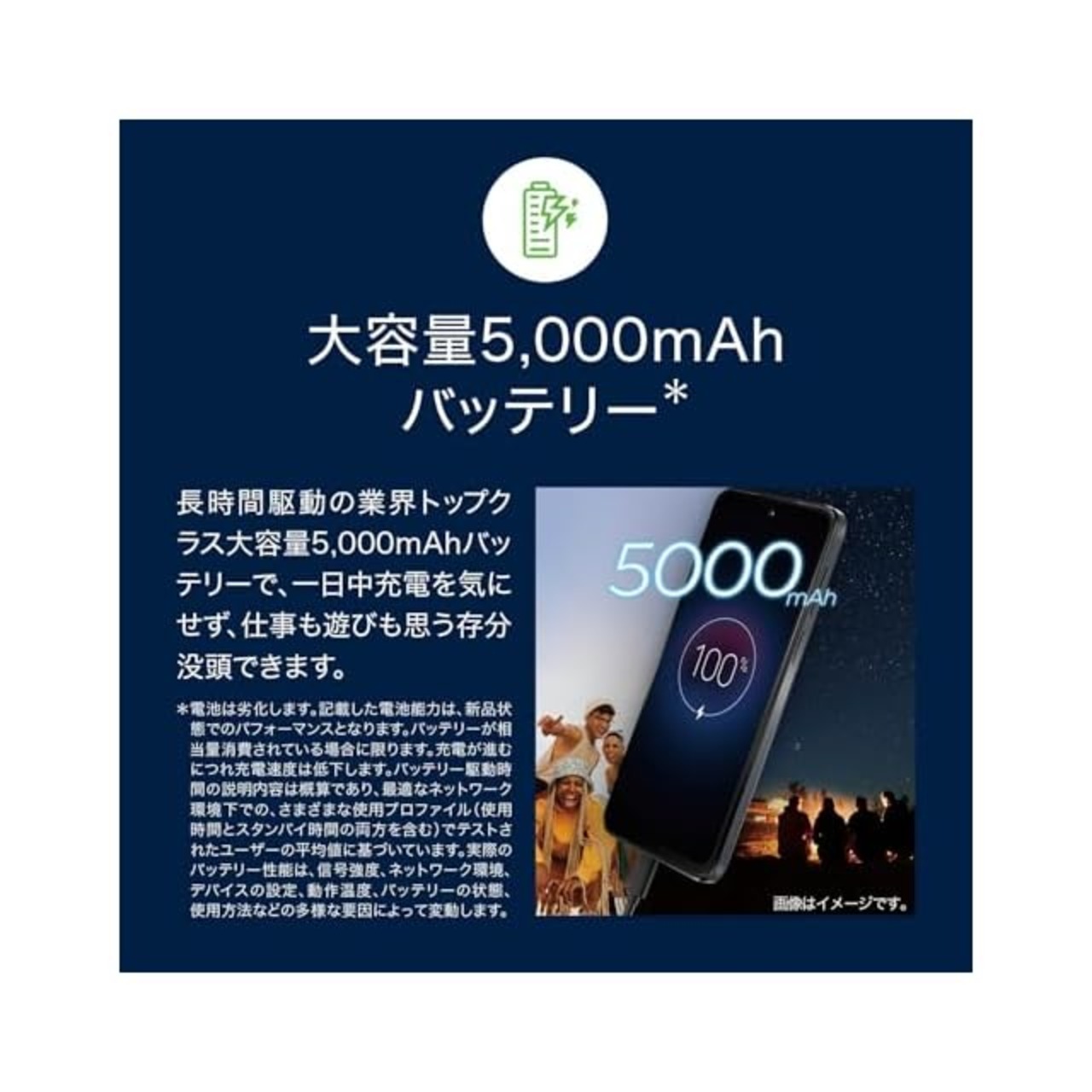 バッテリー:5,000mAh、サイズ(高さx幅x厚さ):約161.56mm x 73.82mm x 7.99mm(最薄部)、重さ:約177g