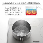 【中身が見えるガラス蓋付き】蓋はガラス製で中が見えるので、外から調理具合を確認できます。また、蓋のハンドル凹部に菜箸やお玉を一時置きできて便利です。