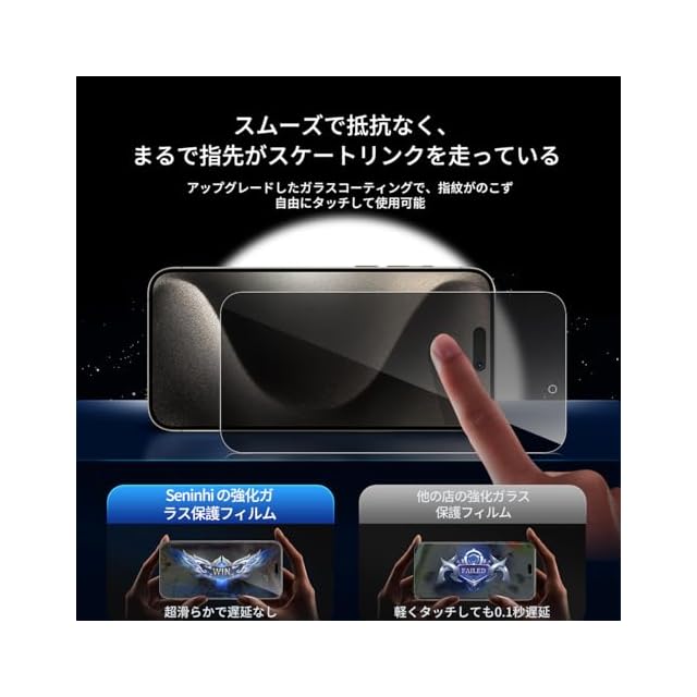 ☞【専用設計】iPhone 15 pro max 専用に設計した保護フィルムなので、必ずご購入前にお使いの携帯電話の年間携帯電話保護フィルムの製造しており機種をご確認ください。(お得な4点セット) 液晶保護フィルム *2枚 + レンズ保護フィルム *2枚【正規品】Seninhi ブランドは 10 年間携帯電話保護フィルムの製造しており 、最高品質の保護フィルムを生産することを約束します。市販の高価な保護フィルムと同じですが、価格がもっと安いので、お客様に大変ご愛顧いただき、月間販売数は20,000枚を超えました。弊社の製品は購入価値があります。安心して当社の製品をお買い求めください。