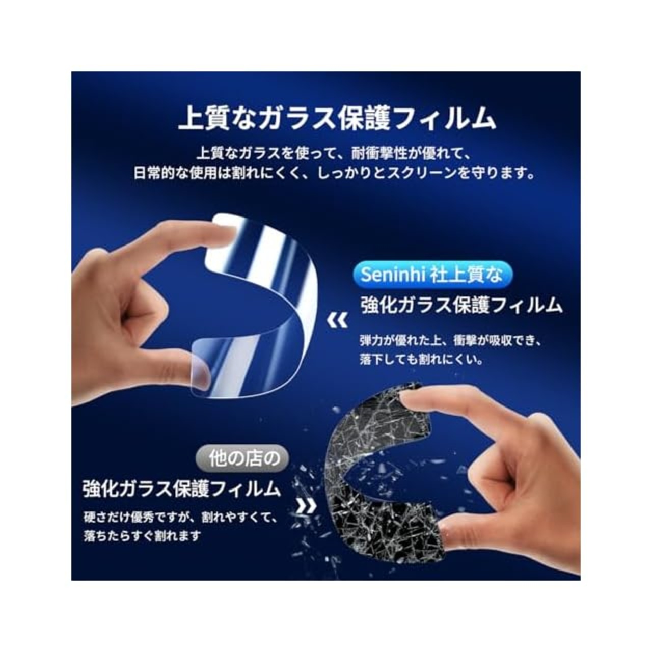 <b>【Seninhi】 iPhone 15 プライバシーフィルム</b><br> <br><br>について 仕様</b><br> <br>厚さ: 0.26mm <br>素材:国産AGC旭硝子ガラス <br>対応機種:iPhone 15<br>【同梱品】 <br>2 × 強化ガラスフィルム (覗き見防止 )<br> 2 × 強化レンズフィルム <br> 1 × ガイド枠<br> 1 × 取扱説明書<br><b>特徴</b> <br>【9h高硬度】 私たちの強化フィルムは国産AGC旭硝子ガラスを使用し、4.5時間の高温急冷と多重強化処理して、同じ厚さの通常のガラスフィルムに比べて約5倍の強さを持ち、ガラスフィルムは9Hの最も硬い表面硬度に達しました。ナイフなどの鋭いものでも傷を与えません。日常生活で気軽に対応できます。<br> 【飛散防止】 飛散防止を通して、万が一ガラスが割れても破片が飛散しなく、破片による重傷事故を減らして、とても安全です。<br> 【覗き見防止 】 特別なブラインド加工により、真正面から見ると高透過率ではっきり見えますが、画面を横から覗かれることを防ぐ180度ブラインド仕様 <br>【高感度タッチ】 この強化フィルムは0.26mmのゴールデン厚さを設計しており、防爆する同時に、感度が高いタッチ体験と連続タッチを確保し、高感度でスムーズなオンスクリーン操作を実現し、ガラスフィルムを取り付けない画面とほぼ同じような使用体験を与えます。高感度でスムーズなオンスクリーン操作は様々なゲーム アプリケーションに適用します。<br> 【99%以上の携帯電話ケースに干渉しない】 百件以上な携帯電話ケースをテストしましたが、適応率は 99%に達しました。高品質の接着剤を使用したので、携帯電話ケースに取り付けられている瞬間保護フィルムがわずかに浮き、軽く押すと気泡がきれいに消えます。<br> 【素人でも簡単に貼り付け】 ガラスフィルムの取扱説明書に張り付ける方法は詳しく記載したので、位置をよく合わせた後、上から軽く貼り付けると、シリコン吸着層が自動的に吸着し、気泡が発生しません。誰でも簡単に貼り付けられ、万が一失敗しても剥がして貼り直すことができます。<br><br><b> 三、ご注意事項:</b><br> 1.フィルムを貼り付ける前に、手をきれいに洗ってください。<br> 2.泡があれば、クロスを指に巻きつけて少しずつ絞りだしてください。<br> 3.貼り直しによる泡を防止するため、はがす際にフィルムの粘着面に手や物が触れないようご注意ください。<br> 4. 保護フィルムは過度の衝撃等を防止するものではありません。携帯電話の故障、紛失等の責任は負いかねます。<br><br><b> 四、アフターサービス ご購入日より180日以内に初期不良や、ヒビ・欠け・ホコリ混入・サイズ違い等の使用上の問題がございましたら、ご遠慮なく、いつでもお気軽にご連絡ください。私たちは具体的な問題により、お客様に満足できる解決策を提供します。</b>