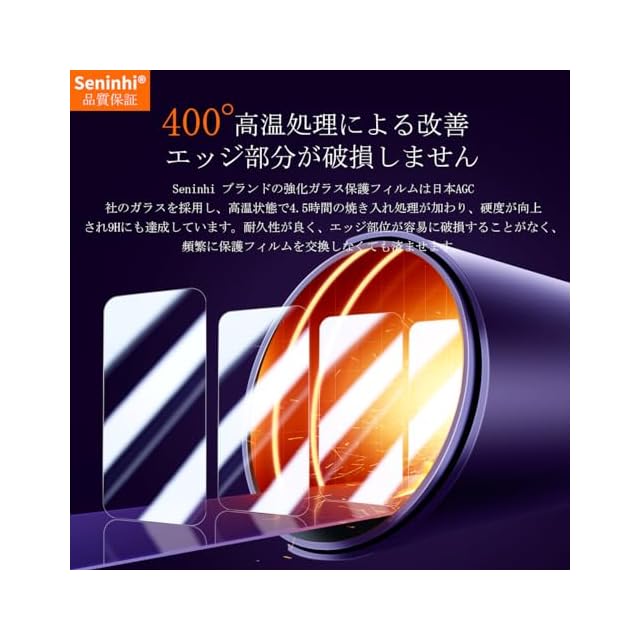 ☞【国産AGC旭硝子ガラス 素材】携帯フィルム及びレンズ保護フィルムは国産AGC旭硝子ガラスを使っており、4.5時間の高温焼入れ処理して、強化を繰り返し、硬さは業界トップレベルの9Hに達しました。市販の通常製品の5倍の硬さに達し、ナイフなどの鋭いものでも傷しません。ハードコーティング技術を利用して、外部衝撃を吸収し、防爆性をアップして、外からの衝撃に簡単に吸収して、衝突されても、画面が壊れるリスクを 99% 減らします。更に15 plus 専用の強化ガラスフィルムは飛散防止加工を行っておりますので、万が一ガラスが割れても怪我を与えません。