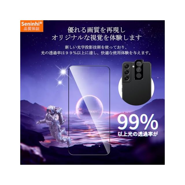 ☞【専用設計】Galaxy S22 SCG13 SC51C 専用に設計した保護フィルムなので、必ずご購入前にお使いの携帯電話の機種をご確認ください。(お買い得な4点セット)液晶保護フィルム*2枚+レンズ保護フィルム*2枚の組み合わせ、1度のご購入で、携帯電話の保護フィルムとカメラ保護フィルムが入っております。【正規品】Seninhi ブランドは 10 年間携帯電話保護フィルムの製造しており、最高品質の保護フィルムを生産することを約束します。市販の高価な保護フィルムと同じですが、価格がもっと安いので、お客様に大変ご愛顧いただき、月間販売数は20,000枚を超えました。弊社の製品は購入価値があります。安心して当社の製品をお買い求めください。