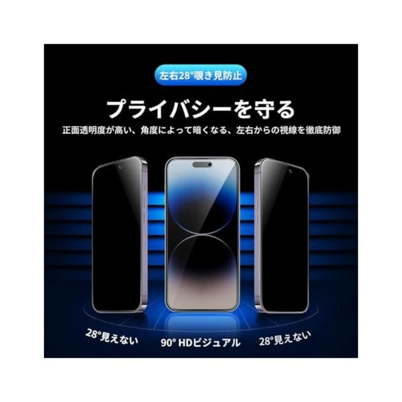 商品名:対応 iPhone 14 Pro Max ガラスフィルム 覗き見 【2枚覗き見防止+2枚レンズ保護フィルム+ガイド枠】 iphone14ProMax フィルム のぞき見防止 レンズフィルム アイホン 14プロ マックス 強化ガラス アイフォン14プロマックス 液晶 保護フィルム 横から見えない 硬度9H 耐衝撃 飛散防止 自動吸着 気泡ゼロ