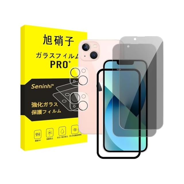<b>【Seninhi】 iPhone 13 プライバシーフィルム</b><br> <br><br>について 仕様</b><br> <br>厚さ: 0.26mm <br>素材:国産AGC旭硝子ガラス <br>対応機種:iPhone 13<br>【同梱品】 <br>2 × 強化ガラスフィルム (覗き見防止 )<br> 2 × 強化レンズフィルム <br> 1 × ガイド枠<br> 1 × 取扱説明書 <br>2 × スクリーンクリーニングキット <br><b>特徴</b> <br>【9h高硬度】 私たちの強化フィルムは国産AGC旭硝子ガラスを使用し、4.5時間の高温急冷と多重強化処理して、同じ厚さの通常のガラスフィルムに比べて約5倍の強さを持ち、ガラスフィルムは9Hの最も硬い表面硬度に達しました。ナイフなどの鋭いものでも傷を与えません。日常生活で気軽に対応できます。<br> 【飛散防止】 飛散防止を通して、万が一ガラスが割れても破片が飛散しなく、破片による重傷事故を減らして、とても安全です。<br> 【覗き見防止 】 特別なブラインド加工により、真正面から見ると高透過率ではっきり見えますが、画面を横から覗かれることを防ぐ180度ブラインド仕様 <br>【高感度タッチ】 この強化フィルムは0.26mmのゴールデン厚さを設計しており、防爆する同時に、感度が高いタッチ体験と連続タッチを確保し、高感度でスムーズなオンスクリーン操作を実現し、ガラスフィルムを取り付けない画面とほぼ同じような使用体験を与えます。高感度でスムーズなオンスクリーン操作は様々なゲーム アプリケーションに適用します。<br> 【99%以上の携帯電話ケースに干渉しない】 百件以上な携帯電話ケースをテストしましたが、適応率は 99%に達しました。高品質の接着剤を使用したので、携帯電話ケースに取り付けられている瞬間保護フィルムがわずかに浮き、軽く押すと気泡がきれいに消えます。<br> 【素人でも簡単に貼り付け】 ガラスフィルムの取扱説明書に張り付ける方法は詳しく記載したので、位置をよく合わせた後、上から軽く貼り付けると、シリコン吸着層が自動的に吸着し、気泡が発生しません。誰でも簡単に貼り付けられ、万が一失敗しても剥がして貼り直すことができます。<br><br><b> 三、ご注意事項:</b><br> 1.フィルムを貼り付ける前に、手をきれいに洗ってください。<br> 2.泡があれば、クロスを指に巻きつけて少しずつ絞りだしてください。<br> 3.貼り直しによる泡を防止するため、はがす際にフィルムの粘着面に手や物が触れないようご注意ください。<br> 4. 保護フィルムは過度の衝撃等を防止するものではありません。携帯電話の故障、紛失等の責任は負いかねます。<br><br><b> 四、アフターサービス ご購入日より180日以内に初期不良や、ヒビ・欠け・ホコリ混入・サイズ違い等の使用上の問題がございましたら、ご遠慮なく、いつでもお気軽にご連絡ください。私たちは具体的な問題により、お客様に満足できる解決策を提供します。</b>