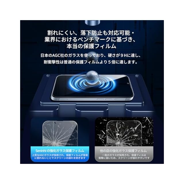 ☞【国産AGC旭硝子ガラス 素材】携帯フィルムは国産AGC旭硝子ガラスを使っており、4.5時間の高温焼入れ処理して、強化を繰り返し、硬さは業界トップレベルの9Hに達しました。市販の通常製品の5倍の硬さに達し、ナイフなどの鋭いものでも傷しません。ハードコーティング技術を利用して、外部衝撃を吸収し、防爆性をアップして、外からの衝撃に簡単に吸収して、衝突されても、画面が壊れるリスクを 99% 減らします。更に iphone 13 pro 専用の強化ガラスフィルムは飛散防止加工を行っておりますので、万が一ガラスが割れても怪我を与えません。