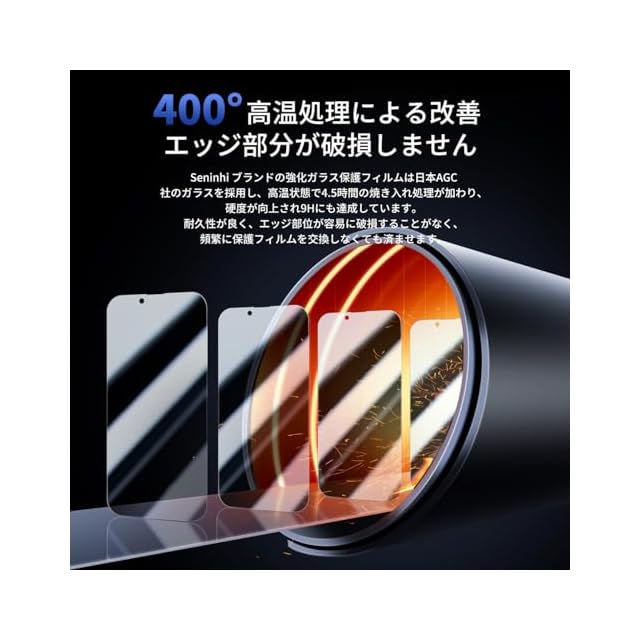 <b>【Seninhi】 iPhone 13 pro プライバシーフィルム</b><br> <br><br>について 仕様</b><br> <br>厚さ: 0.26mm <br>素材:国産AGC旭硝子ガラス <br>対応機種:iPhone 13 pro<br>【同梱品】 <br>2 × 強化ガラスフィルム (覗き見防止 )<br> 2 × 強化レンズフィルム <br> 1 × ガイド枠<br> 1 × 取扱説明書 <br>2 × スクリーンクリーニングキット <br><b>特徴</b> <br>【9h高硬度】 私たちの強化フィルムは国産AGC旭硝子ガラスを使用し、4.5時間の高温急冷と多重強化処理して、同じ厚さの通常のガラスフィルムに比べて約5倍の強さを持ち、ガラスフィルムは9Hの最も硬い表面硬度に達しました。ナイフなどの鋭いものでも傷を与えません。日常生活で気軽に対応できます。<br> 【飛散防止】 飛散防止を通して、万が一ガラスが割れても破片が飛散しなく、破片による重傷事故を減らして、とても安全です。<br> 【覗き見防止 】 特別なブラインド加工により、真正面から見ると高透過率ではっきり見えますが、画面を横から覗かれることを防ぐ180度ブラインド仕様 <br>【高感度タッチ】 この強化フィルムは0.26mmのゴールデン厚さを設計しており、防爆する同時に、感度が高いタッチ体験と連続タッチを確保し、高感度でスムーズなオンスクリーン操作を実現し、ガラスフィルムを取り付けない画面とほぼ同じような使用体験を与えます。高感度でスムーズなオンスクリーン操作は様々なゲーム アプリケーションに適用します。<br> 【99%以上の携帯電話ケースに干渉しない】 百件以上な携帯電話ケースをテストしましたが、適応率は 99%に達しました。高品質の接着剤を使用したので、携帯電話ケースに取り付けられている瞬間保護フィルムがわずかに浮き、軽く押すと気泡がきれいに消えます。<br> 【素人でも簡単に貼り付け】 ガラスフィルムの取扱説明書に張り付ける方法は詳しく記載したので、位置をよく合わせた後、上から軽く貼り付けると、シリコン吸着層が自動的に吸着し、気泡が発生しません。誰でも簡単に貼り付けられ、万が一失敗しても剥がして貼り直すことができます。<br><br><b> 三、ご注意事項:</b><br> 1.フィルムを貼り付ける前に、手をきれいに洗ってください。<br> 2.泡があれば、クロスを指に巻きつけて少しずつ絞りだしてください。<br> 3.貼り直しによる泡を防止するため、はがす際にフィルムの粘着面に手や物が触れないようご注意ください。<br> 4. 保護フィルムは過度の衝撃等を防止するものではありません。携帯電話の故障、紛失等の責任は負いかねます。<br><br><b> 四、アフターサービス ご購入日より180日以内に初期不良や、ヒビ・欠け・ホコリ混入・サイズ違い等の使用上の問題がございましたら、ご遠慮なく、いつでもお気軽にご連絡ください。私たちは具体的な問題により、お客様に満足できる解決策を提供します。</b>