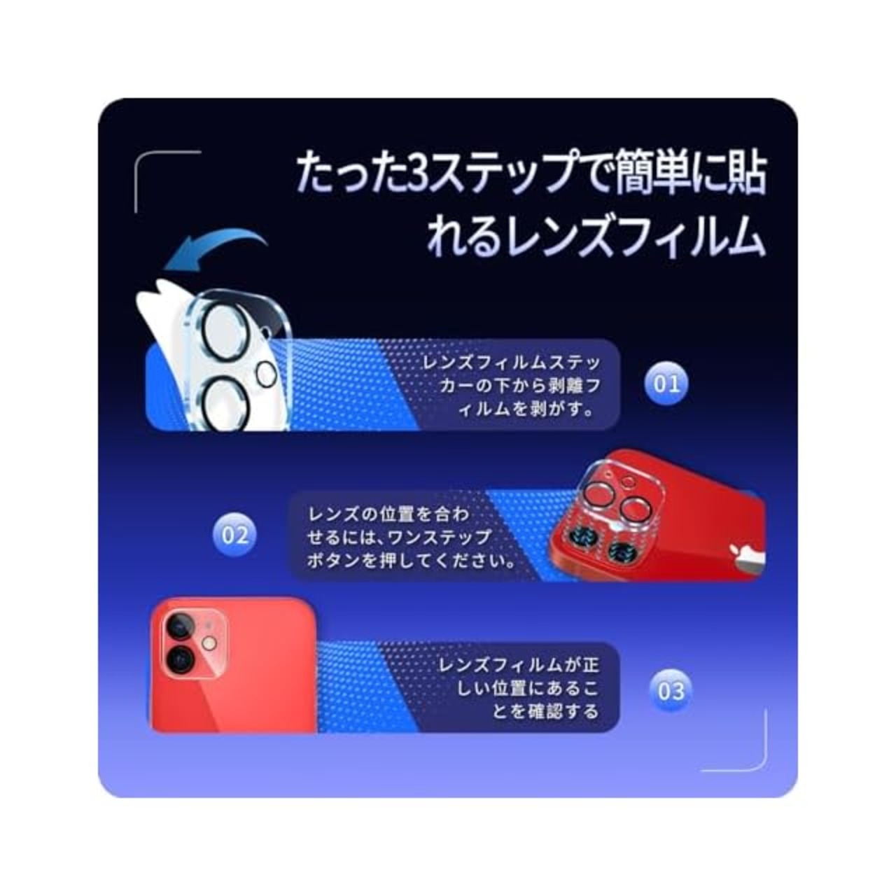 <b>【Seninhi】iPhone 11 / iPhone 12 mimi レンズ保護フィルム について </b><br><br>仕様<br> 厚さ: 0.26mm <br>光透過率: 99% <br>素材:国産AGC旭硝子ガラス <br>対応機種:iPhone 12 Pro Max <br><br> <br>【同梱品】</b><br>3 × レンズ保護フィルム <br> 3 × スクリーンクリーニングキット <br> 3 × ホコリ除去用ステッカー <br> <br> <b>特徴 </b> <br> <b>【9h高硬度】</b><br> 私たちの強化フィルムは日本AGC旭硝子ガラスを使用し、4.5時間の高温急冷と多重強化処理して、同じ厚さの通常のレンズガラスフィルムに比べて約5倍の強さを持ち、ガラスフィルムは9Hの最も硬い表面硬度に達しました。ナイフなどの鋭いものでも傷を与えません。日常生活で気軽に対応できます。 <br> <b>【飛散防止】</b><br> 飛散防止を通して、万が一ガラスが割れても破片が飛散しなく、破片による重傷事故を減らして、とても安全です。 <br> <b> 【ラウンドエッジ加工】</b><br>真空メッキプロセスを使用し、正しい丸みをエッジ処理して、不快感がありません。しかもエッジ部分へ衝撃が少なく、快適で滑らかな肌触りを提供する同時に、使用中に鋭い角のエッジで指を傷されません。 <br> <b>【99%以上の携帯電話ケースに干渉しない】</b><br> 百件以上な携帯電話ケースをテストしましたが、適応率は 99%に達しました。 <br> <b>【素人でも簡単に貼り付け】</b><br>iPhone 11 / iPhone 12 mimi レンズ保護フィルムの粘着面は自動吸着できるので、ガラスフィルムを携帯電話のレンズに合わせるだけで自然に吸着し、しかも気泡の発生しません。誰でも簡単に貼り付けられ、万が一失敗しても剥がして貼り直すことができます。 <br> <b> 三、ご注意事項:</b><br> 1.フィルムを貼り付ける前に、手をきれいに洗ってください。<br> 2.貼り直しによる泡を防止するため、はがす際にフィルムの粘着面に手や物が触れないようご注意ください。<br> 3. 保護フィルムは過度の衝撃等を防止するものではありません。携帯電話の故障、紛失等の責任は負いかねます。<br> <b> 四、アフターサービス ご購入日より180日以内に初期不良や、ヒビ・欠け・ホコリ混入・サイズ違い等の使用上の問題がございましたら、ご遠慮なく、いつでもお気軽にご連絡ください。私たちは具体的な問題により、お客様に満足できる解決策を提供します。</b>