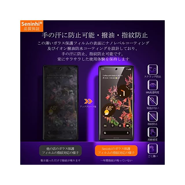 ☞【専用設計】Google Pixel 6 専用に設計した保護フィルムなので、必ずご購入前にお使いの携帯電話の年間携帯電話保護フィルムの製造しており機種をご確認ください。(お得な2点セット) 液晶保護フィルム *2枚 【正規品】Seninhi ブランドは 10 、最高品質の保護フィルムを生産することを約束します。市販の高価な保護フィルムと同じですが、価格がもっと安いので、お客様に大変ご愛顧いただき、月間販売数は20,000枚を超えました。弊社の製品は購入価値があります。安心して当社の製品をお買い求めください。