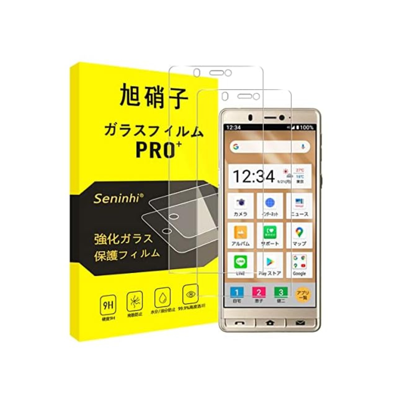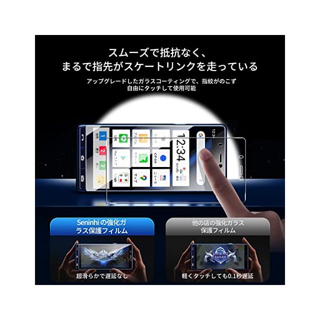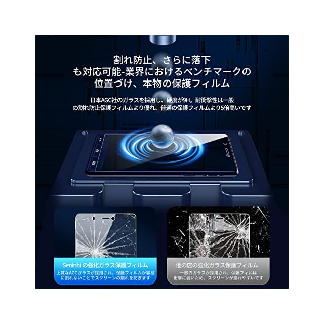 【Seninhi】シンプルスマホ5 / SoftBank A001SH Simple Sumaho 5 強化ガラス 保護フィルム について 仕様 厚さ: 0.26mm 光透過率: 99% 素材:日本AGC旭硝子ガラス 対応機種:シンプルスマホ5 / SoftBank A001SH Simple Sumaho 5 【同梱品】 2 × 強化ガラスフィルム 1 × 取扱説明書 4 × スクリーンクリーニングキット 2 × ホコリ除去用ステッカー 特徴 【9h高硬度】 私たちの強化フィルムは日本AGC旭硝子ガラスを使用し、4.5時間の高温急冷と多重強化処理して、同じ厚さの通常のガラスフィルムに比べて約5倍の強さを持ち、ガラスフィルムは9Hの最も硬い表面硬度に達しました。ナイフなどの鋭いものでも傷を与えません。日常生活で気軽に対応できます。 【飛散防止】 飛散防止を通して、万が一ガラスが割れても破片が飛散しなく、破片による重傷事故を減らして、とても安全です。 【高感度タッチ】 この強化フィルムは0.26mmのゴールデン厚さを設計しており、防爆する同時に、感度が高いタッチ体験と連続タッチを確保し、高感度でスムーズなオンスクリーン操作を実現し、ガラスフィルムを取り付けない画面とほぼ同じような使用体験を与えます。高感度でスムーズなオンスクリーン操作は様々なゲーム アプリケーションに適用します。 【99%以上の携帯電話ケースに干渉しない】 百件以上な携帯電話ケースをテストしましたが、適応率は 99%に達しました。高品質の接着剤を使用したので、携帯電話ケースに取り付けられている瞬間保護フィルムがわずかに浮き、軽く押すと気泡がきれいに消えます。 【素人でも簡単に貼り付け】 ガラスフィルムの取扱説明書に張り付ける方法は詳しく記載したので、位置をよく合わせた後、上から軽く貼り付けると、シリコン吸着層が自動的に吸着し、気泡が発生しません。誰でも簡単に貼り付けられ、万が一失敗しても剥がして貼り直すことができます。 三、ご注意事項: 1.フィルムを貼り付ける前に、手をきれいに洗ってください。 2.泡があれば、クロスを指に巻きつけて少しずつ絞りだしてください。 3.貼り直しによる泡を防止するため、はがす際にフィルムの粘着面に手や物が触れないようご注意ください。 4. 保護フィルムは過度の衝撃等を防止するものではありません。携帯電話の故障、紛失等の責任は負いかねます。 四、アフターサービス ご購入日より180日以内に初期不良や、ヒビ・欠け・ホコリ混入・サイズ違い等の使用上の問題がございましたら、ご遠慮なく、いつでもお気軽にご連絡ください。私たちは具体的な問題により、お客様に満足できる解決策を提供します。 【ご注意】商品はガラス製のため、貼り付け後の落下による破損は外となります。