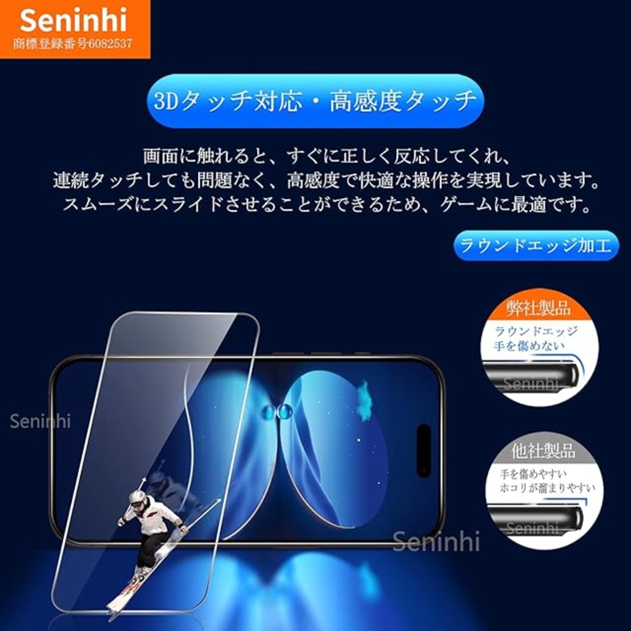 【指紋防止・高感度タッチ】 この iphone 15Proガラス フィルム は高耐久の撥油コーティングを使っており、滑らかなタッチ感を実現しました!そしてガラスフィルムに撥油コーティングを加工しており、指紋、汚れ、油、水などがスクリーンに付いても軽く拭くだけできれいになります。滑らかな操作体験を実現しました。当社のガラスフィルムは、通常の製品よりも滑らかな感触を備えて、感度が高く、快適に操作でき、ゲームなどのアプリケーションにとても適します。