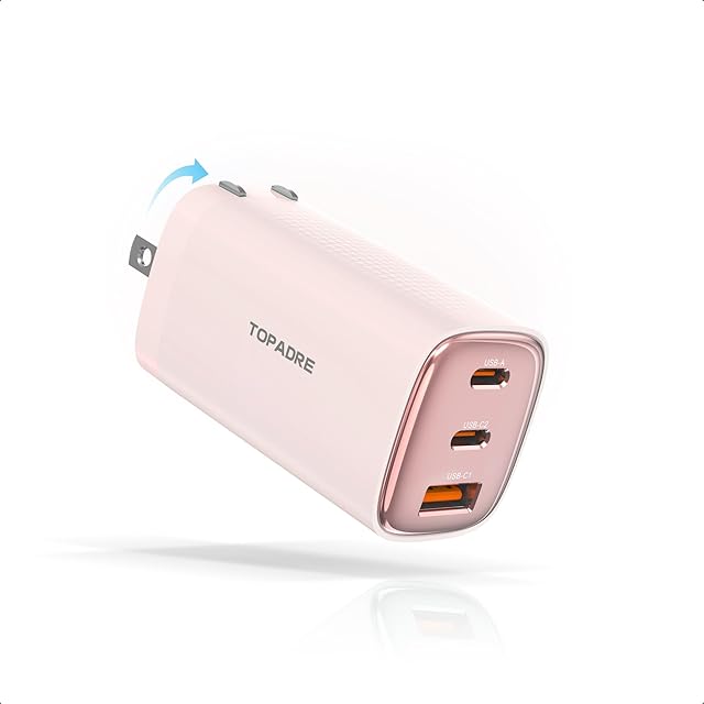 TOPADRE 急速充電器 65w PD 充電器 Type-C USB 3ポート三台同時充 電 [超低温/GaNIII技術/折りたたみ式プラグ] タイプc 充 電器 対応MacBook/iPad/Android/Windows PC PSE認証済 PD3.0 対応iphone 16/15/14/13 フルシリーズ対応 ピンク