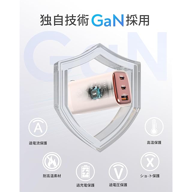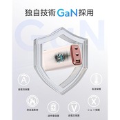 【GaN技術搭載】窒化ガリウム(GaNⅢ)技術を採用することで高出力かつコンパクトな設計を実現。高い安全性:従来製品と同じ多重保護システムに加え、により優れた安全性を実現。独自の温度管理と接続端末の保護システムでお使いの機器を24時間守ります。