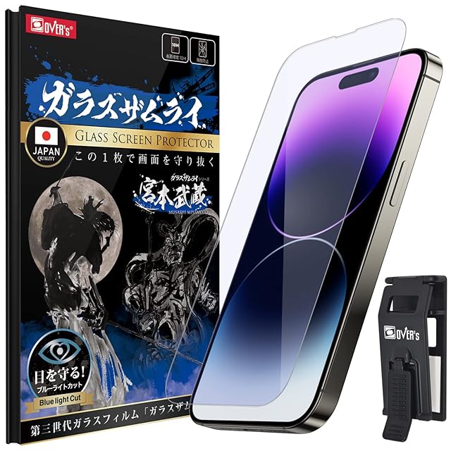 商品名:ガラスザムライ iPhone 14 Pro 用 ガラスフィルム ブルーライトカット 硬度 10H 国産AGC素材 強化ガラス 保護フィルム 米軍MIL規格 いPhone 362-blue