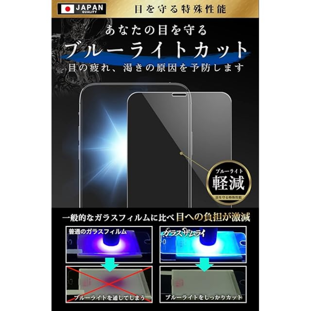 商品名:ガラスザムライ iPhone 11 Pro Max 用 ガラスフィルム ブルーライトカット 硬度 10H 国産AGC素材 強化ガラス 保護フィルム 米軍MIL規格 240-blue