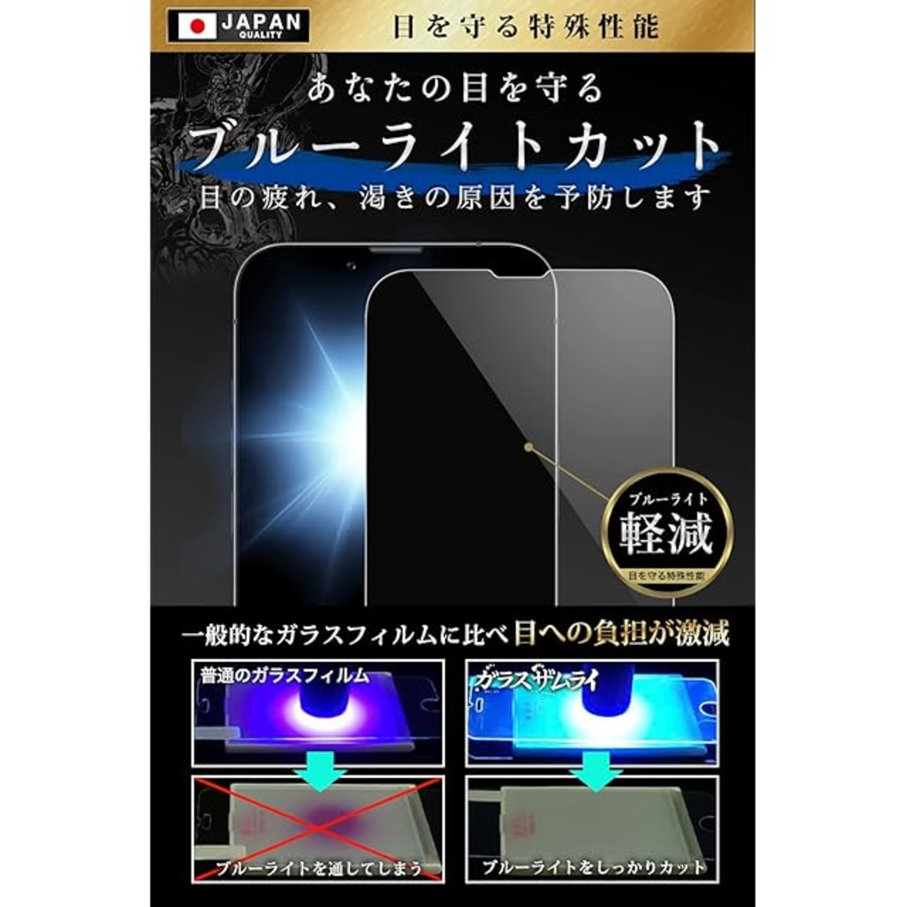 商品名:ガラスザムライ iPhone 16e 用 ガラスフィルム ブルーライトカット 硬度 10H 国産ガラス素材 強化ガラス 保護フィルム 米軍MIL規格 422-blue