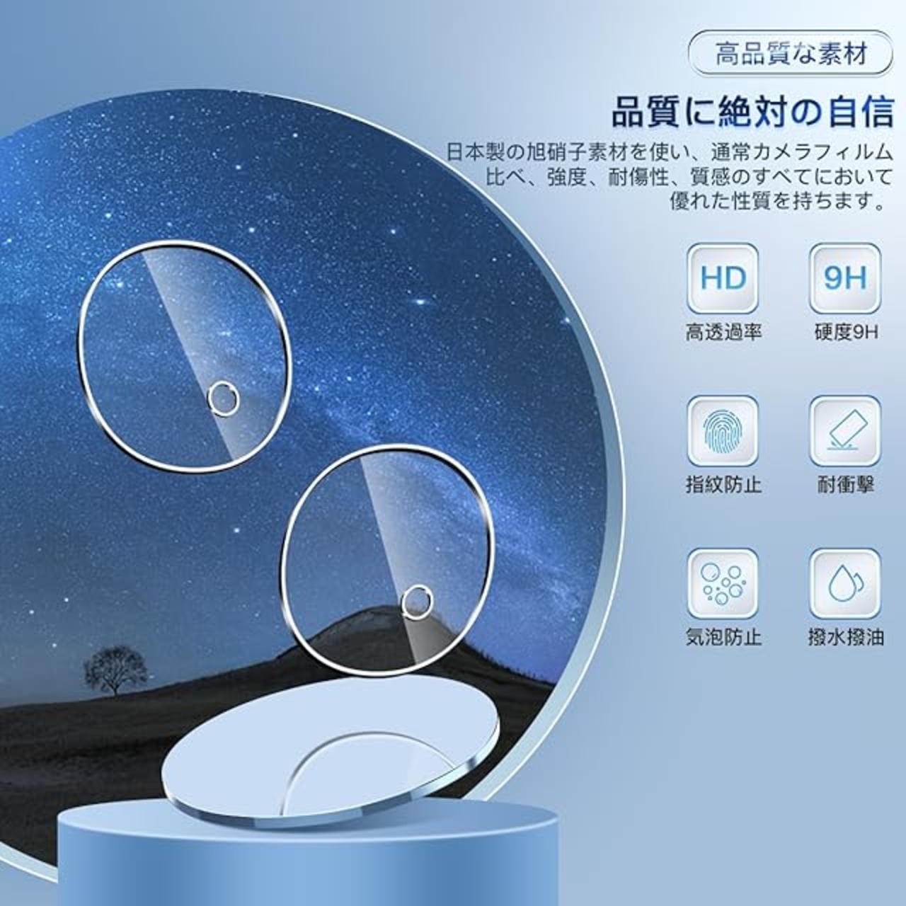商品名:対応 AQUOS Wish5 SH-52F / SH-M32 カメラカバー レンズフィルム 【2枚セット 日本旭硝子製】 アクオスWish5 用 カメラフィルム 強化ガラス 保護カバー ケース 全面保護 硬度9H 耐衝撃 飛散防止 レンズ保護カバー 露出オーバー防止 防塵 自動吸着 気泡ゼロ 貼り付け簡単 アクオス ウィッシュ 5 用 カメラ保護カバー