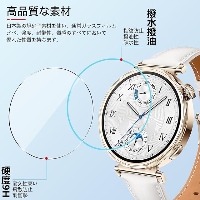 商品名:対応 HUAWEI WATCH GT5 41mm ガラスフィルム 3枚 保護フィルム 【3枚セット 日本旭硝子製】 対応 ファーウェイ GT5 41mm スマートウォッチ フィルム 強化ガラス 保護フィルム カバー 硬度9H 耐衝撃 3D Touch対応 高感度タッチ 指紋防止 撥油性 疎水性 自動吸着 気泡ゼロ 貼り付け簡単