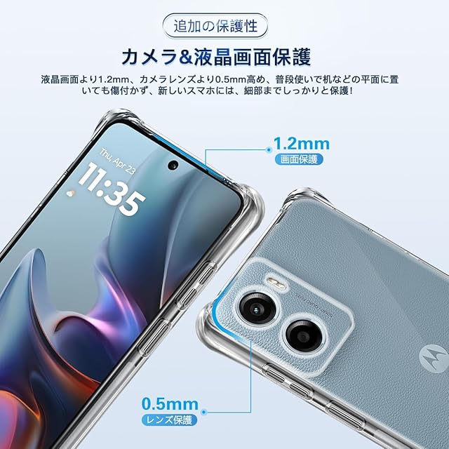 商品名:Moto G05 用 ケース ソフト クリア TPU カバー 【米軍MIL規格 黄ばみなし】 モトローラ G05 用 カバー 保護ケース 6.67インチ 薄型 耐衝撃 傷つけ防止 四隅滑り止 レンズ保護 ワイヤレス充電対応