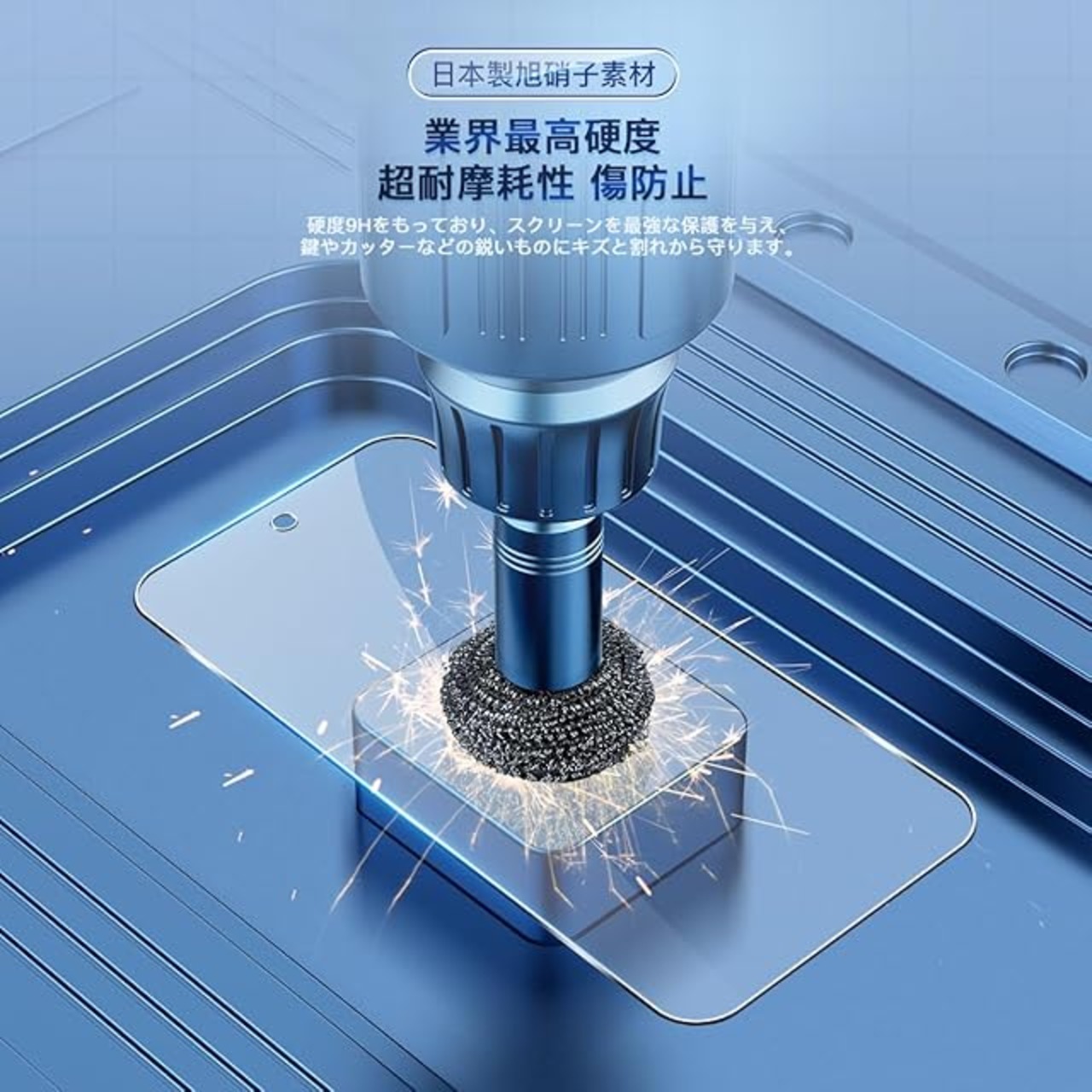 ★【業界最高硬度·耐衝撃性!】日本製旭硝子素材、9H硬度、またハードコーティング技術により、1メートルから30回約10kgの落下耐荷重試験に合格します,日常生活中に、うっかりカッター、キー、コインなどの鋭利のものを当てても傷がつきなく、耐久性がつよいです。また、飛散防止加工され、万が一ガラスが破損した場合、飛び散らず破片は張り付いた状態になり、使用者の安全を確保します。