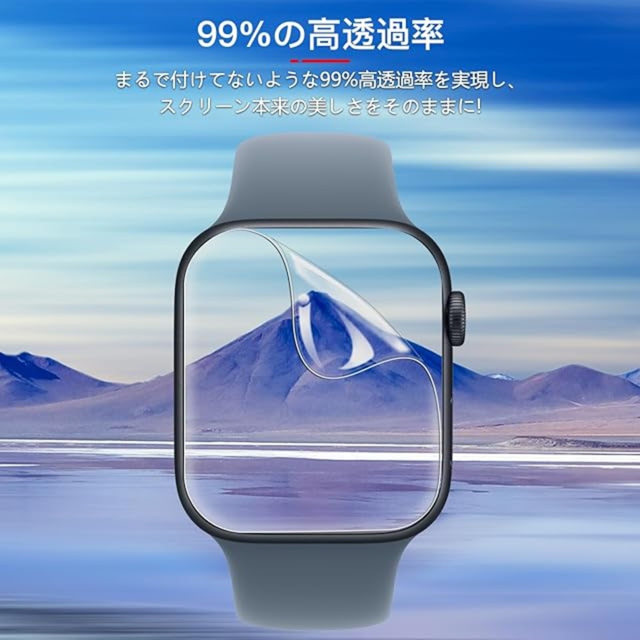 <b>対応機種:対応 Apple Watch SE3 44mm 保護フィルム</b> <br><b>購入前に対応機種をご確認よろしくお願い致します</b> <br><b>パッケージ内容</b> <br>5×全面保護フィルム<br>1x取扱説明書<br>1x気泡除去ヘラ<br><b>非常に柔らかいウレタン素材を採用する事により、湾曲部分に追従し画面の端まで保護することができ、アップルウォッチse 第3世代 44mm 独自のデザインを損なわず、まるでフィルムを貼ってないような仕上がりになります。</b><br><b>【製品特徴】</b> <br>①高品質のTPU素材<br>②貼り付けが可能で、気泡が発生しにくいです<br>③高透過率&高感度タッチ<br>④撥水・撥油加工で指紋や皮脂の付着を防げ<br>⑤キズ修復機能<br><b>【柔らかいTPU素材】</b><br>TPU製素材、エッジ部分に柔軟で丈夫な炭素繊維素材を採用した為、湾曲部分に追従し画面の端まで保護、保護機能を更に強化させます!さらに、ガラスと違い、割れる心配もありません。<br><b>【キズレスと気泡レス】</b><br>優れた伸縮性を持っていて、フィルム表面の細いキズと貼り付け時に小さい気泡が発生てしまった場合、通常24時間内で消えます。<br><b>【貼り付けやすい】</b> <br>気泡防止 アルコールパッド・クリーニングクロス・静電気ホコリ取りシートを使用することにより 気泡が入りにくく、誰でも簡単に貼り付けることができます<br><b>【99%高透過率】</b> <br>透過率99%超えのフィルムで、液晶画面の鮮明度を損なうことなく画面本来の美しさをそのまま表現,よい手触り感でしかもスムーズな操作感をご体験いただけます<br><b>【指紋防止】</b> <br>指紋防止、撥油コーティング加工されているため、耐油性に優れ、指紋がつきにくく、付着した汚れなどは簡単に拭きとれます<br><b>【3D設計】</b> <br>画面の曲面に沿った3D設計で、端末のデザインを損なわずに衝撃から守るフルカバーフィルム、 市販の99%の保護ケースと干渉しなく、相性が良いものです。<br><b>【スムーズな操作感】</b> <br>高感度タッチ 極薄の厚さでタッチスクリーンの反応を損なわず表面のオイル加工により快適な操作が可能。<br>スクリーンにタッチするとすぐにフィードバックができます。遅延の心配はありません<br><b>貼り付け方法:</b><br>ステップ1:アルコールパッドを使ってスクリーンの汚れを拭き取リます。<br>その後、乾いた布でスクリーンをさらに徹底的にぬぐい取ってください。<br>[1]はアルコールパック[2]は乾いた布<br>ステップ2:ダストステッカー(ホコリ除去シール)で軽く叩いて、スクリーンに残っている小さなホコリを取り除きます。<br>ステップ3:フィルムを取り出し、フィルムの剥離紙①を剥がします。位置を合わせて、液晶画面に粘着させます。<br>ステップ4:ヘラで切れ込み線を基点に、片方の表面保護シートを上に 90 度曲げて、粘着面の保護シールがフィルム本体から離れたことを確認できましたら、ヘラで押し進めていき、粘着させます。<br>ステップ5:ヘラで切れ込み線を基点に、もう一方の表面保護シートを上に 90 度曲げて、粘着面の保護シールがフィルム本体から離れたことを確認できましたら、ヘラで押し進めていき、粘着させます。<br>ステップ6:腕時計を持ち上げ、指で真ん中から端へとこすって、フィルムをしっかりと腕時計に密着させます。フィルムの表面にある保護シートを剥がし、指を布で包み、縁を押さえながら、密着させます。<br>ステップ7:貼り付けてから、再度クロスで保護フィルムを拭きます。