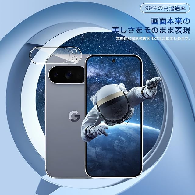 <b>対応機種:対応 google Pixel 10 Pro</b> <br><b>購入前に対応機種をご確認よろしくお願い致します</b> <br><b>パッケージ内容</b> <br>2×強化カメラ保護フィルム<br>2×ダストステッカー<br>1x取扱説明書<br><b>厚み0.26mmの強化ガラスを使用した、対応 ピクセル10プロ レンズフィルム。日本製素材旭硝子製を採用しております、9Hの表面硬度を誇る強化ガラス,ナイフに触れても傷つきにくく</b><br><b>【製品特徴】</b> <br>①旭硝子素材硬度9H<br>②貼り付けが可能で、気泡が発生しにくいです<br>③高透過率&露出オーバー防止<br>④撥水・撥油加工で指紋や皮脂の付着を防げ<br>⑤2.5D ラウンドエッジ仕様<br><b>【耐久性 安全性】</b> <br>日本製旭硝子素材の採用、9H硬度、強化ガラス 耐衝撃、スクラッチ防止。飛散防止加工、激しい衝撃を受けてもカメラフィルムは貼り付けのままでございます<br><b>【貼り付けやすい】</b> <br>気泡防止 アルコールパッド・クリーニングクロス・静電気ホコリ取りシートを使用することにより 気泡が入りにくく、誰でも簡単に貼り付けることができます<br><b>【99%高透過率】</b> <br>透過率99%超えのフィルムで、液晶画面の鮮明度を損なうことなく画面本来の美しさをそのまま表現。<br><b>【指紋防止】</b> <br>指紋防止、飛散防止 撥油コーティング加工されているため、耐油性に優れ、指紋がつきにくく、付着した汚れなどは簡単に拭きとれます<br><b>パッケージ内容</b> <br>2×強化カメラ保護フィルム<br>1x取扱説明書<br><b>貼り付け方法:</b><br>ステップ1:まず、付属の緑色の「1」ウェットシートでスマートフォン用レンズに付いた汚れを拭きとります。<br>ステップ2:次に、ピンク色の「2」ドライシートで水滴や指紋などを拭きとります。<br>ステップ3:付属の青色シールを使って、ホコリやごみをきれいに拭きとります。<br>ステップ4:カメラフィルムをスマートフォン用レンズに貼ります。揭下透明的胶卷贴纸。スマートフォン用レンズの上に軽く置きながら、位置を調整してください。埃が付かないように注意してください。<br>ステップ5:中央から外の方に、押しながら貼り付けます。