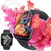 <b>対応機種:対応 Apple Watch Series 11 42mm 保護フィルム</b> <br><b>購入前に対応機種をご確認よろしくお願い致します</b> <br><b>パッケージ内容</b> <br>5×全面保護フィルム<br>1x取扱説明書<br>1x気泡除去ヘラ<br><b>非常に柔らかいウレタン素材を採用する事により、湾曲部分に追従し画面の端まで保護することができ、Apple Watch 42mm 独自のデザインを損なわず、まるでフィルムを貼ってないような仕上がりになります。</b><br><b>【製品特徴】</b> <br>①高品質のTPU素材<br>②貼り付けが可能で、気泡が発生しにくいです<br>③高透過率&高感度タッチ<br>④撥水・撥油加工で指紋や皮脂の付着を防げ<br>⑤キズ修復機能<br><b>【柔らかいTPU素材】</b><br>TPU製素材、エッジ部分に柔軟で丈夫な炭素繊維素材を採用した為、湾曲部分に追従し画面の端まで保護、保護機能を更に強化させます!さらに、ガラスと違い、割れる心配もありません。<br><b>【キズレスと気泡レス】</b><br>優れた伸縮性を持っていて、フィルム表面の細いキズと貼り付け時に小さい気泡が発生てしまった場合、通常24時間内で消えます。<br><b>【貼り付けやすい】</b> <br>気泡防止 アルコールパッド・クリーニングクロス・静電気ホコリ取りシートを使用することにより 気泡が入りにくく、誰でも簡単に貼り付けることができます<br><b>【99%高透過率】</b> <br>透過率99%超えのフィルムで、液晶画面の鮮明度を損なうことなく画面本来の美しさをそのまま表現,よい手触り感でしかもスムーズな操作感をご体験いただけます<br><b>【指紋防止】</b> <br>指紋防止、撥油コーティング加工されているため、耐油性に優れ、指紋がつきにくく、付着した汚れなどは簡単に拭きとれます<br><b>【3D設計】</b> <br>画面の曲面に沿った3D設計で、端末のデザインを損なわずに衝撃から守るフルカバーフィルム、 市販の99%の保護ケースと干渉しなく、相性が良いものです。<br><b>【スムーズな操作感】</b> <br>高感度タッチ 極薄の厚さでタッチスクリーンの反応を損なわず表面のオイル加工により快適な操作が可能。<br>スクリーンにタッチするとすぐにフィードバックができます。遅延の心配はありません<br><b>貼り付け方法:</b><br>ステップ1:アルコールパッドを使ってスクリーンの汚れを拭き取リます。<br>その後、乾いた布でスクリーンをさらに徹底的にぬぐい取ってください。<br>[1]はアルコールパック[2]は乾いた布<br>ステップ2:ダストステッカー(ホコリ除去シール)で軽く叩いて、スクリーンに残っている小さなホコリを取り除きます。<br>ステップ3:フィルムを取り出し、フィルムの剥離紙①を剥がします。位置を合わせて、液晶画面に粘着させます。<br>ステップ4:ヘラで切れ込み線を基点に、片方の表面保護シートを上に 90 度曲げて、粘着面の保護シールがフィルム本体から離れたことを確認できましたら、ヘラで押し進めていき、粘着させます。<br>ステップ5:ヘラで切れ込み線を基点に、もう一方の表面保護シートを上に 90 度曲げて、粘着面の保護シールがフィルム本体から離れたことを確認できましたら、ヘラで押し進めていき、粘着させます。<br>ステップ6:腕時計を持ち上げ、指で真ん中から端へとこすって、フィルムをしっかりと腕時計に密着させます。フィルムの表面にある保護シートを剥がし、指を布で包み、縁を押さえながら、密着させます。<br>ステップ7:貼り付けてから、再度クロスで保護フィルムを拭きます。