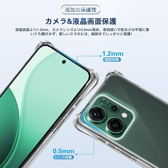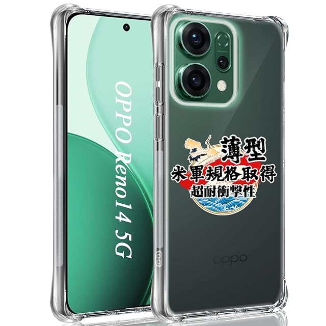 <b>対応機種:対応 OPPO Reno14 5G</b> <br><b>購入前に対応機種をご確認よろしくお願い致します</b>高品質のTPU素材を採用した保護ケースは、四隅には高耐震クッションを搭載しており、高い耐衝撃性です。スマホを全方位からしっかりと守ります。<br><b>【製品特徴】</b> <br>①超高耐衝撃性②滑りにくい③抜群な透明感④超精密なタッチ⑤ワイヤレス充電<br><b>【耐衝撃性、さらに強化】</b> <br>コンクリートの地面に厚さ5mmの合板を敷き、高さ1.2mから合計26回、違う角度から落下させる実験をしましたが、本体に傷はつきませんでした。<br>どんな衝撃的な旅にもスマホを守り抜く保護力を誇り、頑強なバリアを築き上げた。さらに、米国防総省が制定した米軍MIL規格に完勝し、業界最高の耐衝撃性を誇ることを証明しています。<br><b>【画面·カメラ保護】</b> <br>面と背面カメラ部のフチを高く設計し、液晶画面とカメラレンズをキズから保護します。<br>スマホを机などの平面に置いた場合に、液晶画面とカメラレンズが接触してできるキズが最小限に抑えられるよう、表側(液晶画面側)は1.2mmの、裏側(背面側)は1mmの高低差をつけ、ちゃんと携帯を保護することができます。<br><b>【精確な穴あけ加工】</b> <br>外周はTPU(ウレタン樹脂)で滑りにくく持ち易い上にクッション性も高いです、長く使っても熱がこもらない。<br>本体にぴったりフィイットするよう設計し、精巧をきわめていることの孔位で、充電するやイヤホンで音楽を聴くことにも支障なく使用でき、携帯へ負荷を掛けずに楽々装着できます。<br><b>【ワイヤレス充電対応】</b> <br>ケースはワイヤレス充電に対応しており、ケースを付けたまま充電器に置くだけで充電が可能。<br><b>【指紋防止】</b> <br>指紋防止、飛散防止 撥油コーティング加工されているため、耐油性に優れ、指紋がつきにくく、付着した汚れなどは簡単に拭きとれます<br><b>【簡単に脱着する方法】</b> <br>スマホを横向きに左手で持ち。右手の親指でReno14 5Gカメラの部分を上に押しながら、右手の差し指でスマホケース右上の角を下に押し出してケースを外す。