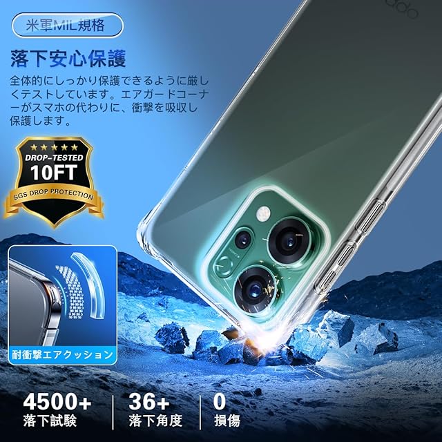 【米軍MIL規格·耐衝撃性!】いくら気をつけていても落としてしまうことがある!でも大丈夫!ケースは米国防総省が制定する米軍 MIL 規格に準拠しており、どんな激しい衝撃にも耐え、スマホを確実に守る強力な保護力を誇ります。頑強なバリアを築き上げており、対応 Reno14 5G をあらゆる衝撃から完全に守り抜くために生まれた優れた製品です。