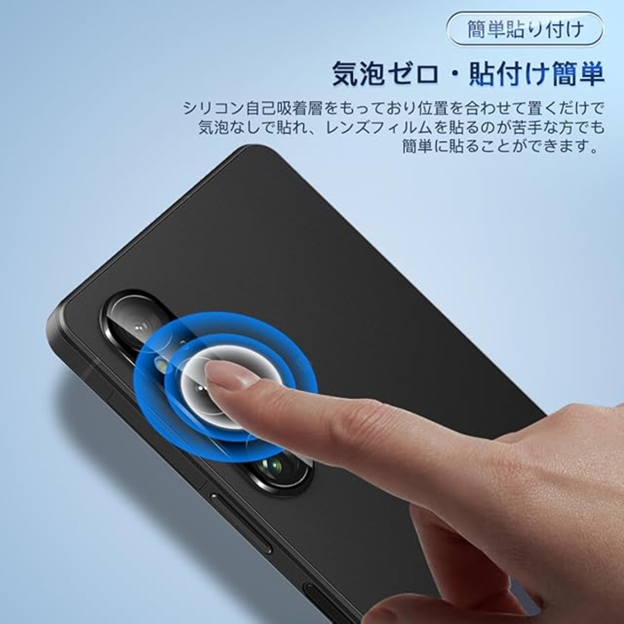 <b>対応機種:対応 エクスペリア 1 VI</b> <br><b>購入前に対応機種をご確認よろしくお願い致します</b> <br><b>パッケージ内容</b> <br>2×強化カメラ保護フィルム<br>1x取扱説明書<br><b>厚み0.26mmの強化ガラスを使用した、対応 Xperia 1 VI レンズフィルム。日本製素材旭硝子製を採用しております、9Hの表面硬度を誇る強化ガラス,ナイフに触れても傷つきにくく</b><br><b>【製品特徴】</b> <br>①旭硝子素材硬度9H<br>②貼り付けが可能で、気泡が発生しにくいです<br>③高透過率&露出オーバー防止<br>④撥水・撥油加工で指紋や皮脂の付着を防げ<br>⑤2.5D ラウンドエッジ仕様<br><b>【耐久性 安全性】</b> <br>日本製旭硝子素材の採用、9H硬度、強化ガラス 耐衝撃、スクラッチ防止。飛散防止加工、激しい衝撃を受けてもカメラフィルムは貼り付けのままでございます<br><b>【貼り付けやすい】</b> <br>気泡防止 アルコールパッド・クリーニングクロス・静電気ホコリ取りシートを使用することにより 気泡が入りにくく、誰でも簡単に貼り付けることができます<br><b>【99%高透過率】</b> <br>透過率99%超えのフィルムで、液晶画面の鮮明度を損なうことなく画面本来の美しさをそのまま表現。<br><b>【指紋防止】</b> <br>指紋防止、飛散防止 撥油コーティング加工されているため、耐油性に優れ、指紋がつきにくく、付着した汚れなどは簡単に拭きとれます<br><b>パッケージ内容</b> <br>2×強化カメラ保護フィルム<br>2×アルコールパッド<br>2×ダストステッカー<br>1x取扱説明書<br><b>貼り付け方法:</b><br>ステップ1:まず、付属の緑色の「1」ウェットシートでスマートフォン用レンズに付いた汚れを拭きとります。<br>ステップ2:次に、ピンク色の「2」ドライシートで水滴や指紋などを拭きとります。<br>ステップ3:付属の青色シールを使って、ホコリやごみをきれいに拭きとります。<br>ステップ4:カメラフィルムをスマートフォン用レンズに貼ります。揭下透明的胶卷贴纸。スマートフォン用レンズの上に軽く置きながら、位置を調整してください。埃が付かないように注意してください。<br>ステップ5:中央から外の方に、押しながら貼り付けます。