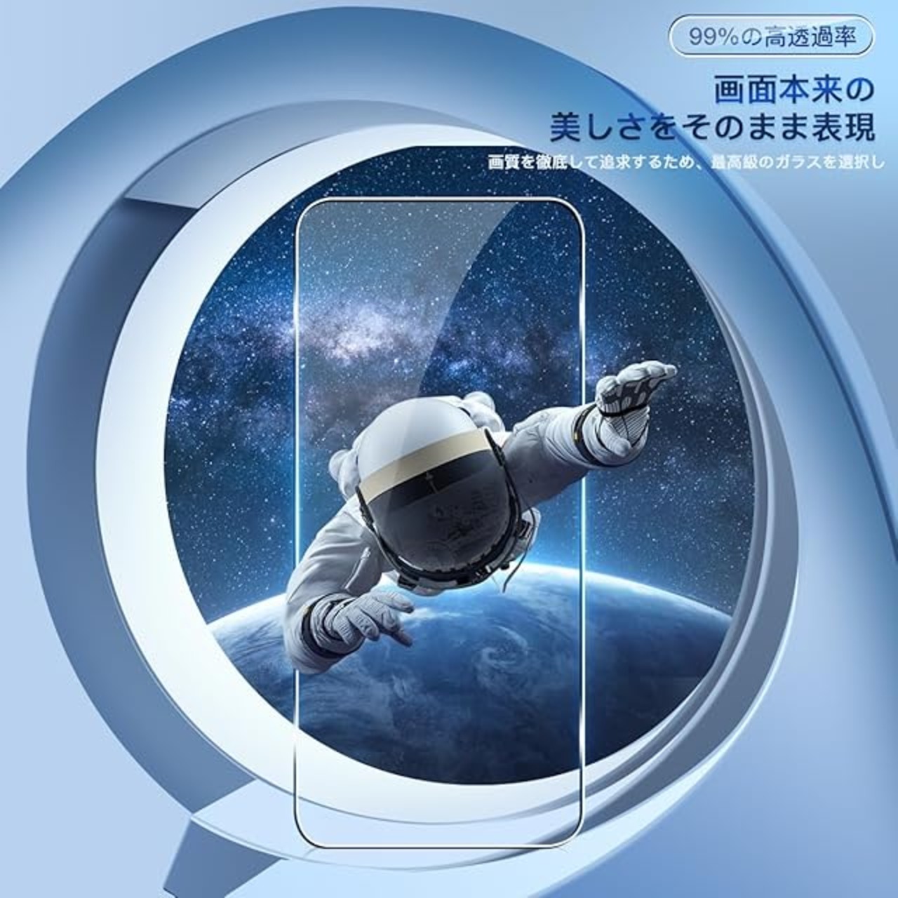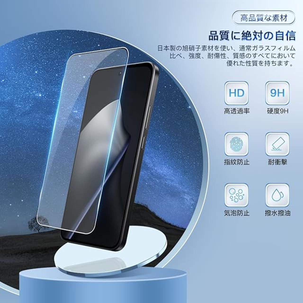★【業界最高硬度・耐衝撃性!】 日本製旭硝子素材を採用し、硬度 9H の超強化ガラスにハードコーティング技術を施しています。1 メートルの高さから 10kg の荷重を 30 回繰り返し落下させる過酷な試験に合格した実績を持ち、日常生活で遭遇するキーやカッター、コインなどの鋭い物による傷からも端末をしっかり保護します。 さらに、飛散防止加工により、万一ガラスが破損した場合でも破片が飛び散ることを防ぎ、破片はほぼ固定された状態を維持するため、使用者の安全を確実にサポートします。