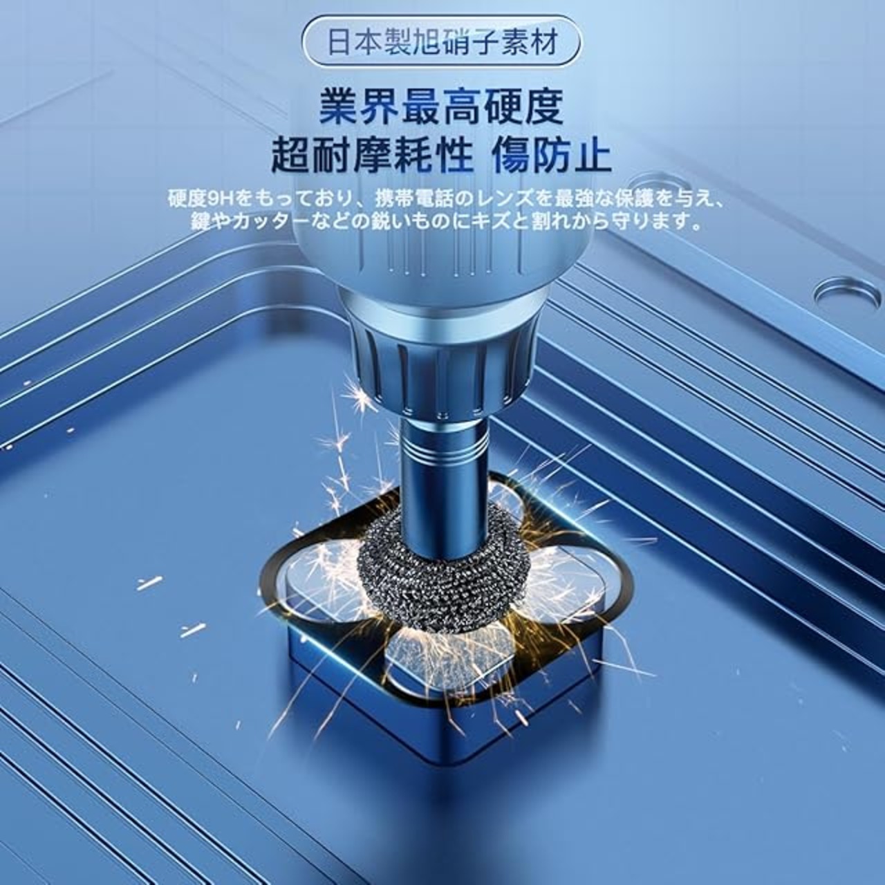 ★【業界最高硬度・耐衝撃性!】 日本製旭硝子素材を採用し、硬度 9H の超強化ガラスにハードコーティング技術を施しています。1 メートルの高さから 10kg の荷重を 30 回繰り返し落下させる過酷な試験に合格した実績を持ち、日常生活で遭遇するキーやカッター、コインなどの鋭い物による傷からも端末をしっかり保護します。 さらに、飛散防止加工により、万一ガラスが破損した場合でも破片が飛び散ることを防ぎ、破片はほぼ固定された状態を維持するため、使用者の安全を確実にサポートします。