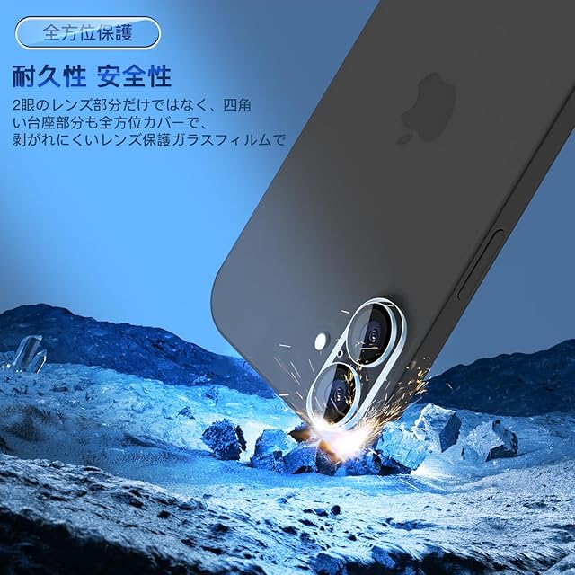 商品名:対応 iPhone 16/iPhone 16 Plus カメラカバー レンズフィルム 【2枚セット 日本旭硝子製】 対応 アイフォン16/アイフォン16Plus カメラフィルム 強化ガラス 保護カバー ケース 全面保護 硬度9H 耐衝撃 飛散防止 黒縁取り 2眼レンズ保護カバー 露出オーバー防止 防塵 気泡ゼロ 貼り付け簡単 対応 いPhone16/いPhone16Plus カメラ保護カバー